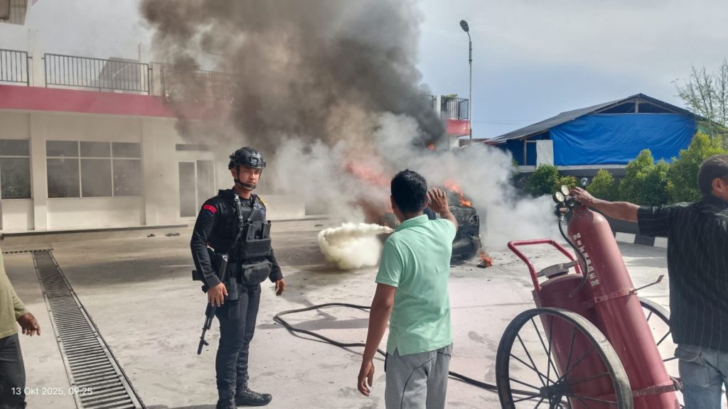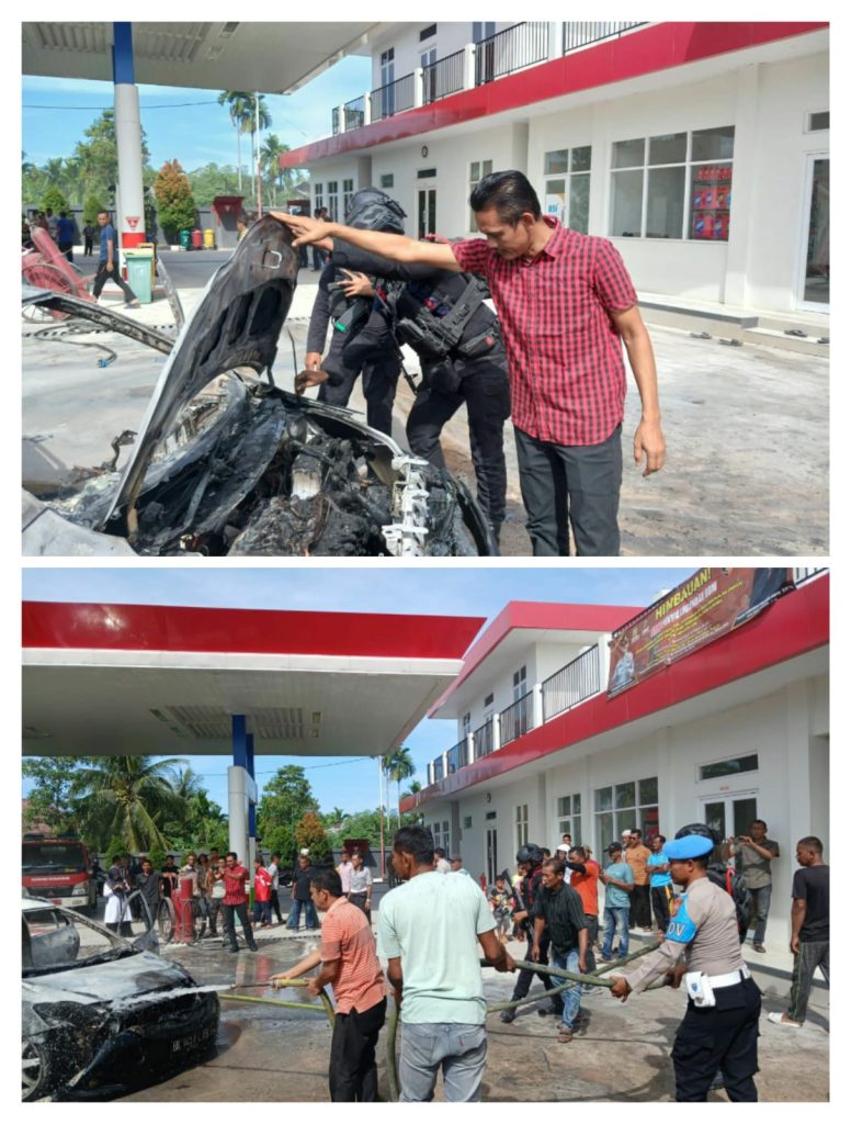 PIDIE JAYA, blusuk onlineā Kejadian mengejutkan terjadi di SPBU PT. Hurrem Perta Energy No. 14.241.114, Gampong Meunasah Jurong, Kecamatan Meurah Dua, Kabupaten Pidie Jaya, Senin (13/10/2025) sekitar pukul 09.15 WIB. Sebuah mobil Toyota Vios tiba-tiba terbakar hebat saat sedang mengisi bahan bakar.