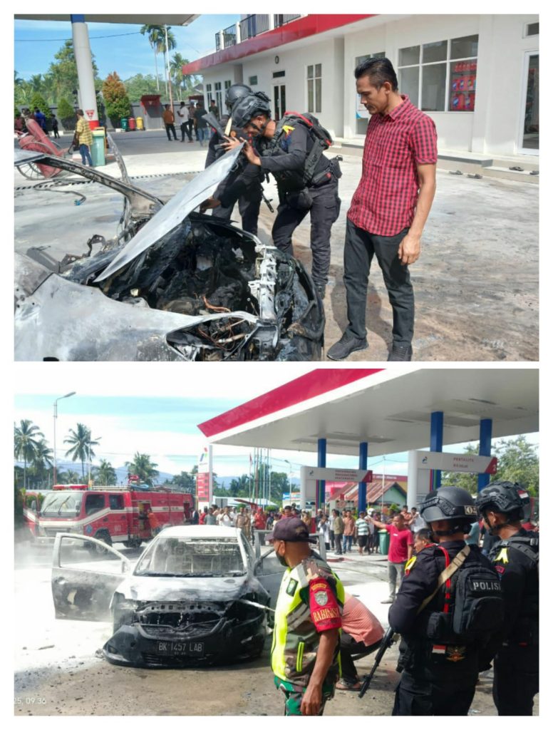 āBenar, telah terjadi kebakaran satu unit mobil Toyota Vios di area SPBU Gampong Meunasah Jurong. Api berhasil dipadamkan setelah dua unit mobil Damkar tiba di lokasi,ā ujarnya.
