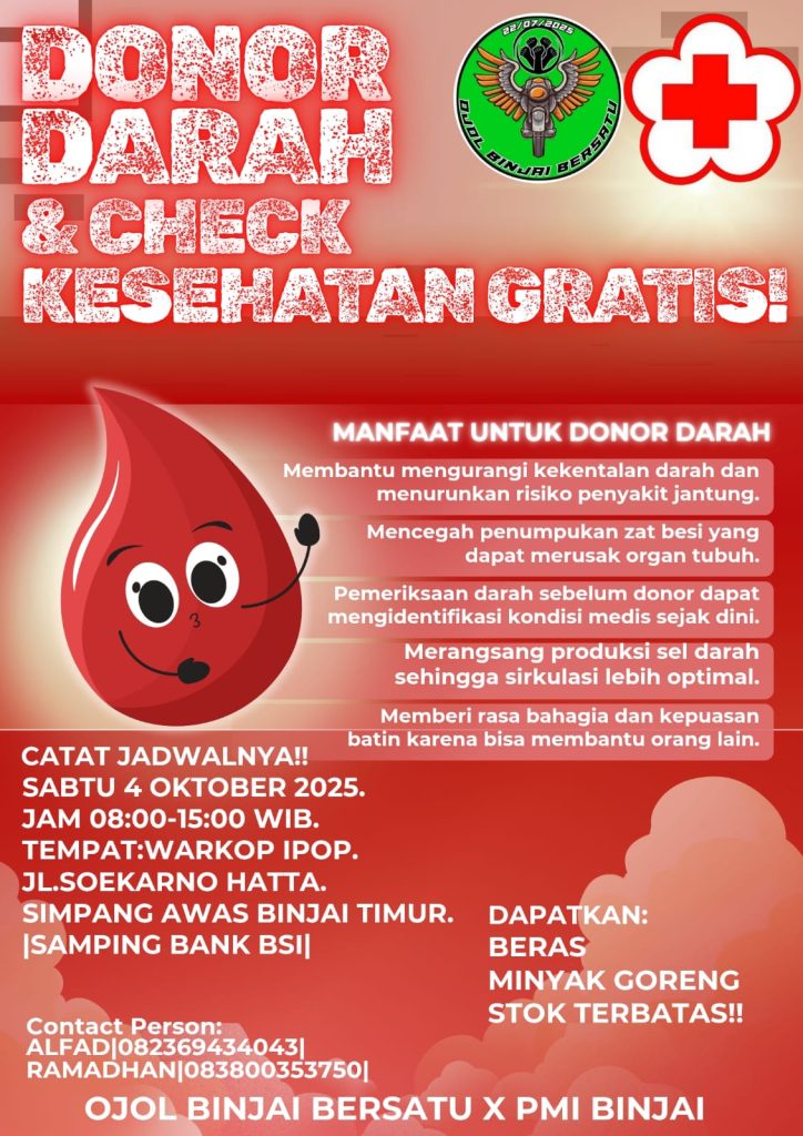 Setetes darahmu sangat berarti untuk kehidupan orang lain, sekaligus bisa cek kesehatanmu secara gratis.