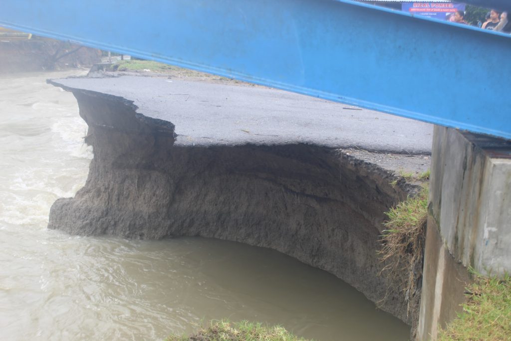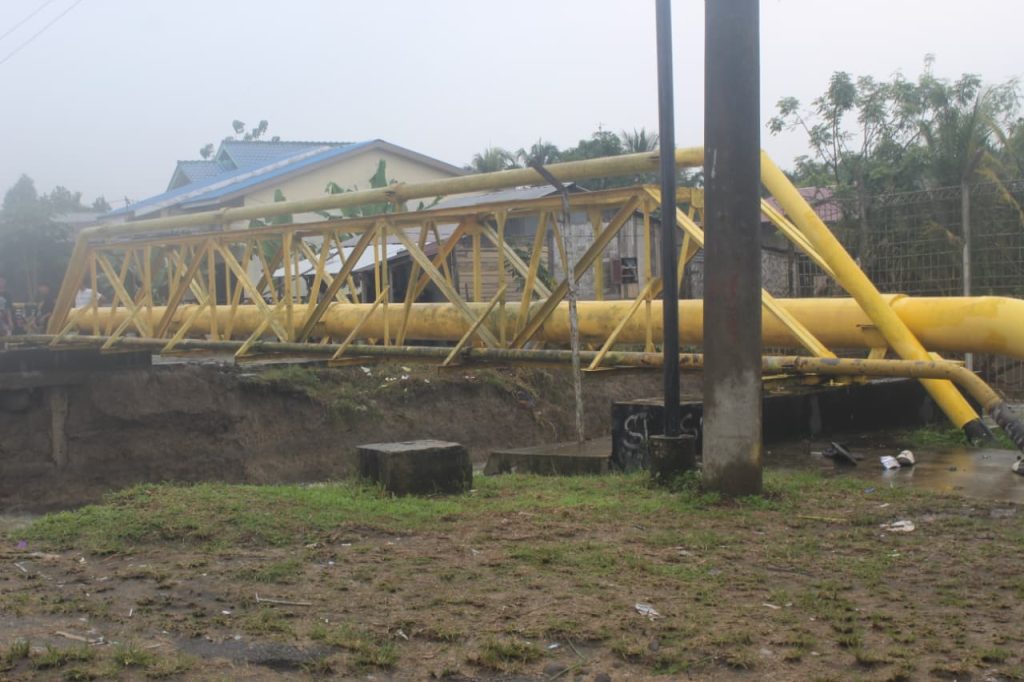 Derasnya arus banjir mengamuk dan menghantam Jembatan Desa Paya Bakung hingga rata tak bersisa, Jumat (28/11). Akibatnya, akses utama yang menghubungkan Paya Bakung dan Sialang Muda kini putus total.