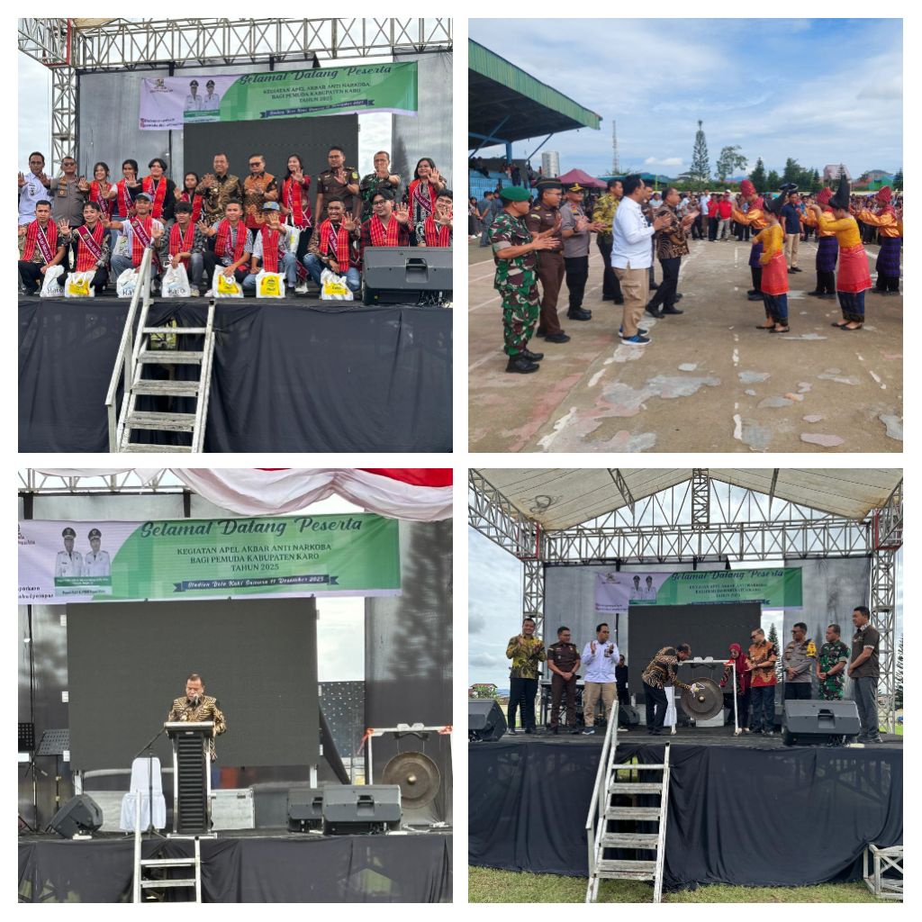 Acara dibuka dengan penyambutan Forkopimda melalui tarian adat Karo, dilanjutkan laporan kegiatan, doa bersama, serta penghormatan melalui lagu Indonesia Raya. Ketua panitia, Juni Antoni Kemit, S.STP, menyampaikan bahwa apel akbar ini difokuskan untuk memperkuat edukasi dan kesadaran kolektif terhadap bahaya narkoba.