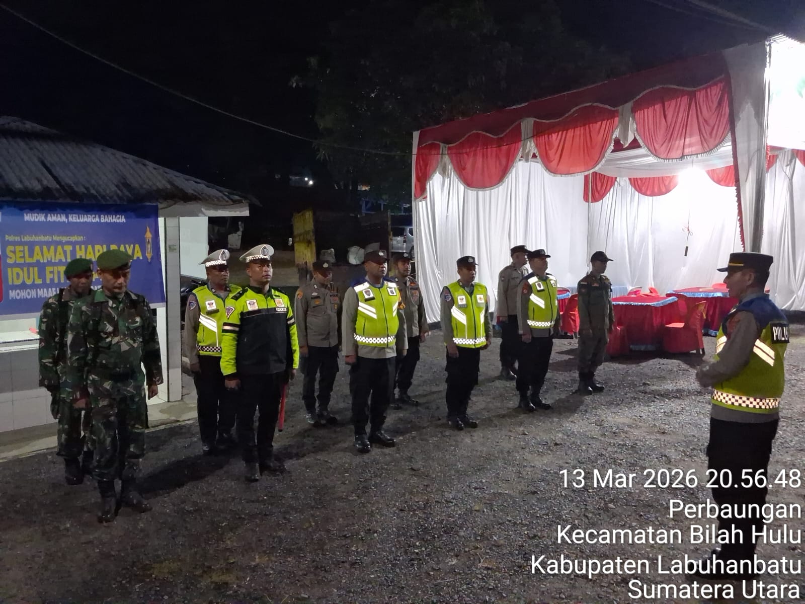 Apel yang berlangsung pada pukul 20.30 WIB tersebut dilaksanakan di Pos Yan I Aek Nabara, Jalan Lintas Sumatera, Desa Perbaungan, Kabupaten Labuhanbatu, dan dipimpin langsung oleh Kapolsek Bilah Hulu AKP Redi Sinulingga selaku Kapos Yan.