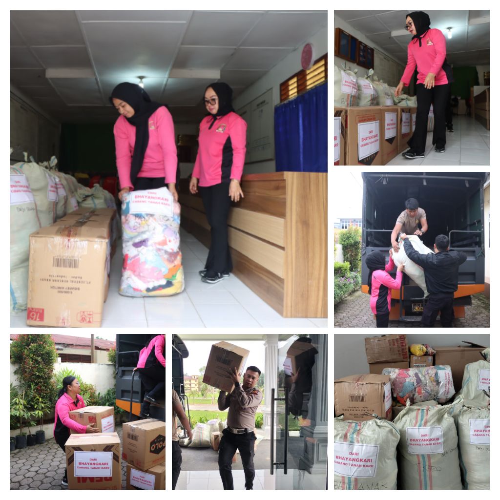 Bhayangkari Cabang Tanah Karo Salurkan Bantuan Pakaian Layak Pakai untuk Korban Banjir di Taput, Sibolga, Tapteng, dan Tapsel