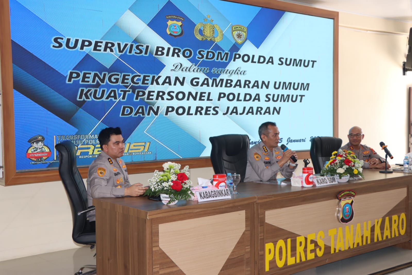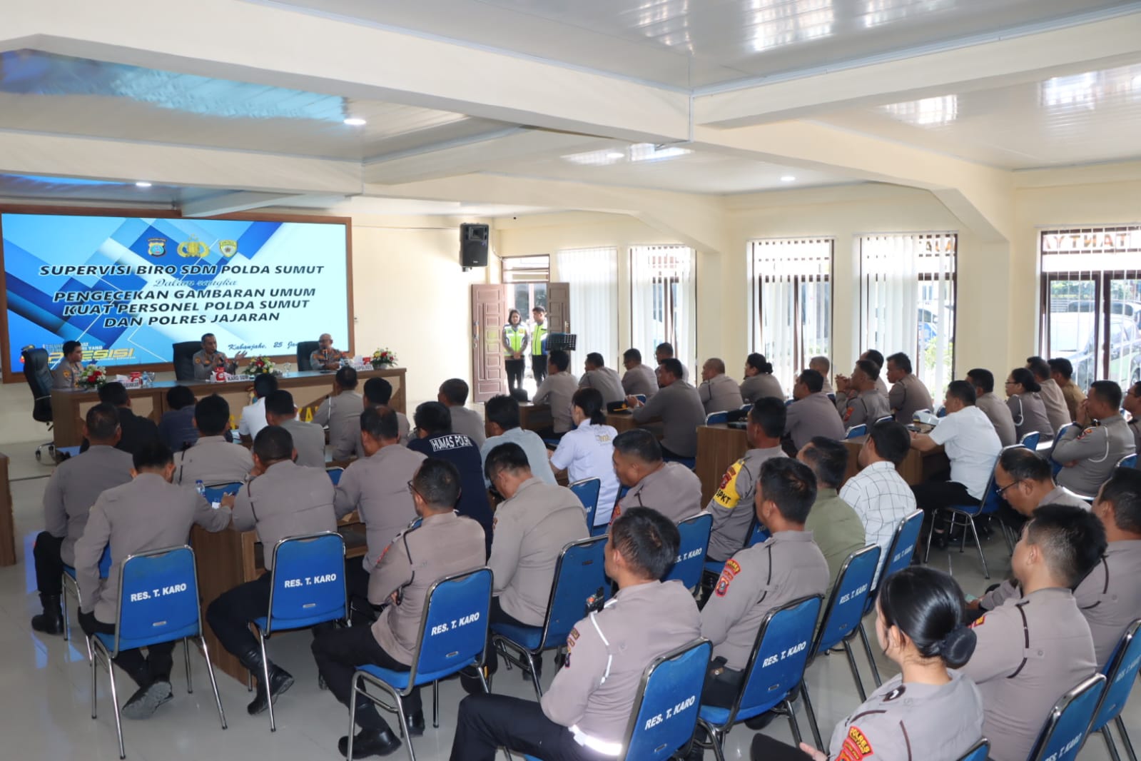 Kabanjahe, Karo – Blusuk.online – Biro Sumber Daya Manusia (SDM) Polda Sumatera Utara melaksanakan kegiatan supervisi dan memberikan arahan kepada jajaran Polres Tanah Karo, Minggu (25/1/2026) sekitar pukul 12.00 WIB. Kegiatan berlangsung di Aula Pur Pur Sage, Mapolres Tanah Karo.