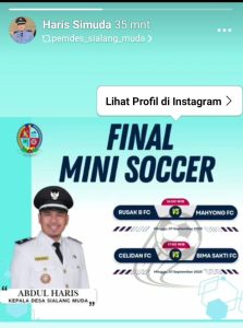 FINAL MINI SOCCER DESA SIALANG MUDA ⚽📅 Minggu, 07 September 2025🕓 Pukul 16.00 WIB – selesai📍 Lapangan Dusun 2, Desa Sialang Muda Trending|04.09.202504.09.2025oleh Rifai Blusuk online,Desa Sialang Muda, Ayo warga Sialang Muda! Saksikan serunya laga final