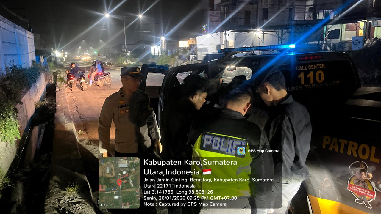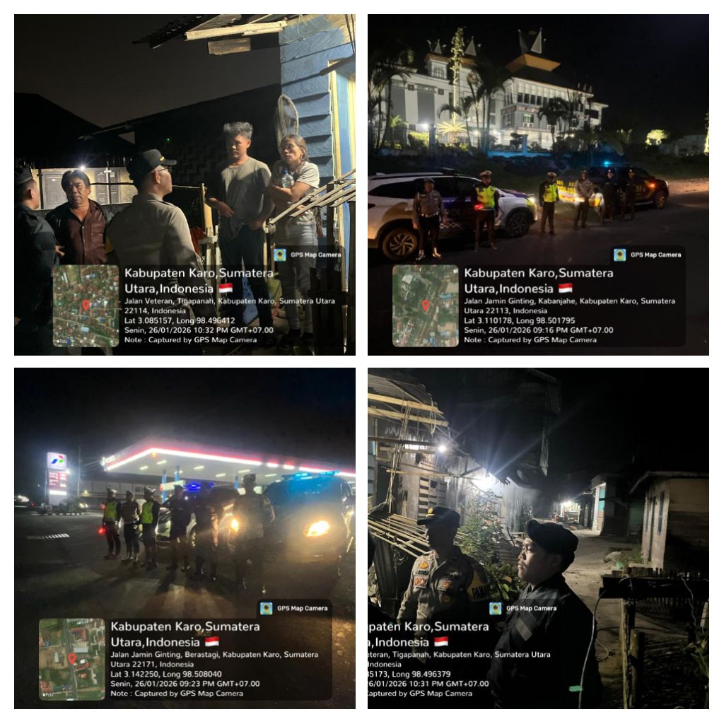 Karo – Blusuk.online – Dalam rangka menciptakan situasi keamanan dan ketertiban masyarakat (kamtibmas) yang aman dan kondusif, Polres Tanah Karo melaksanakan patroli malam pada Senin (26/1/2026) mulai pukul 23.00 WIB hingga selesai. Kegiatan patroli ini sebagai langkah antisipasi terhadap tindak kejahatan 3C (curat, curas, dan curanmor), balap liar, tawuran, serta potensi gangguan kamtibmas lainnya di wilayah Kecamatan Kabanjahe.