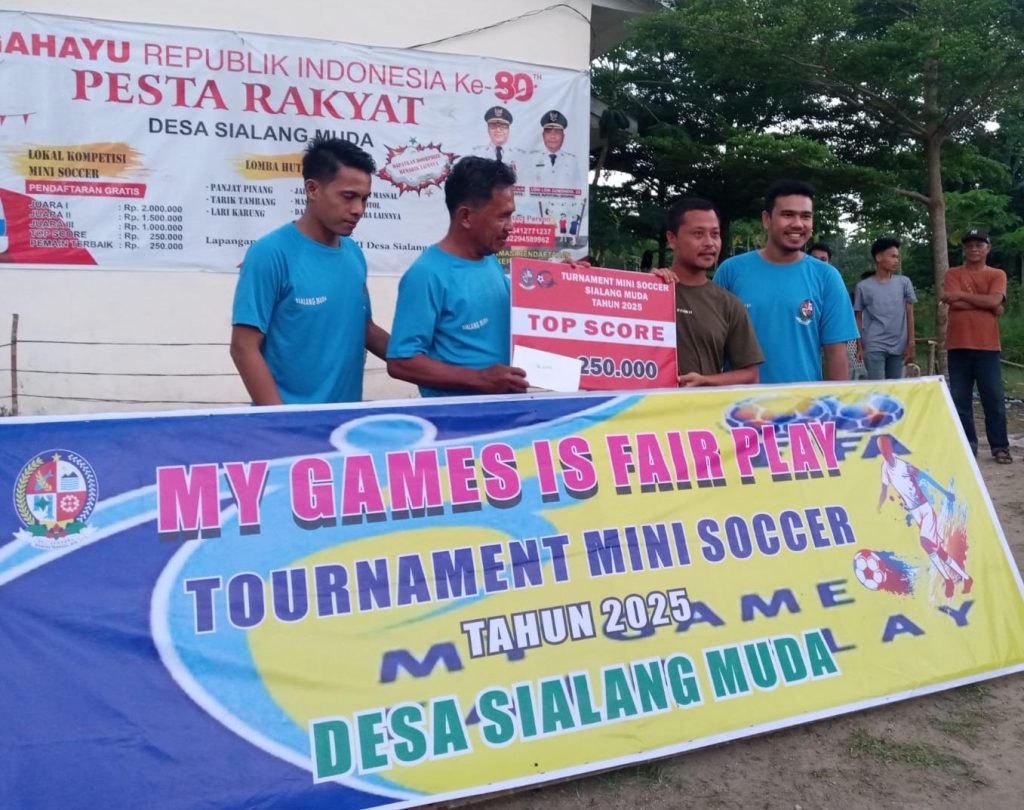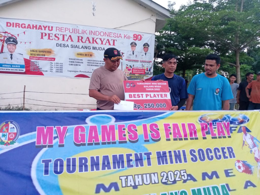 Sialang Muda, Blusuk Online – Turnamen Mini Soccer Desa Sialang Muda Kecamatan Hamparan Perak resmi berakhir dengan sukses dan meriah. Dalam partai final yang digelar Minggu (7/9/2025), CILIDAN FC berhasil keluar sebagai juara 1 setelah menumbangkan lawan-lawannya dengan permainan apik.