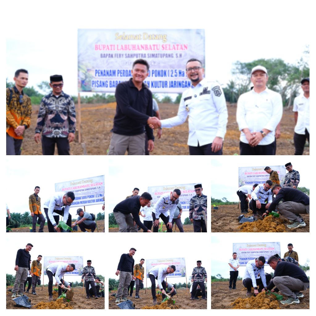 Labuhanbatu Selatan – Blusuk.online – Bupati Labuhanbatu Selatan (Labusel), Fery Sahputra Simatupang, meninjau langsung kebun pisang yang dikelola oleh petani muda di Desa Sosopan, Kecamatan Kotapinang, Rabu (18/12/2025). Kunjungan tersebut menjadi bentuk dukungan nyata Pemerintah Kabupaten Labuhanbatu Selatan terhadap pengembangan sektor pertanian produktif berbasis potensi lokal dan peran generasi muda.