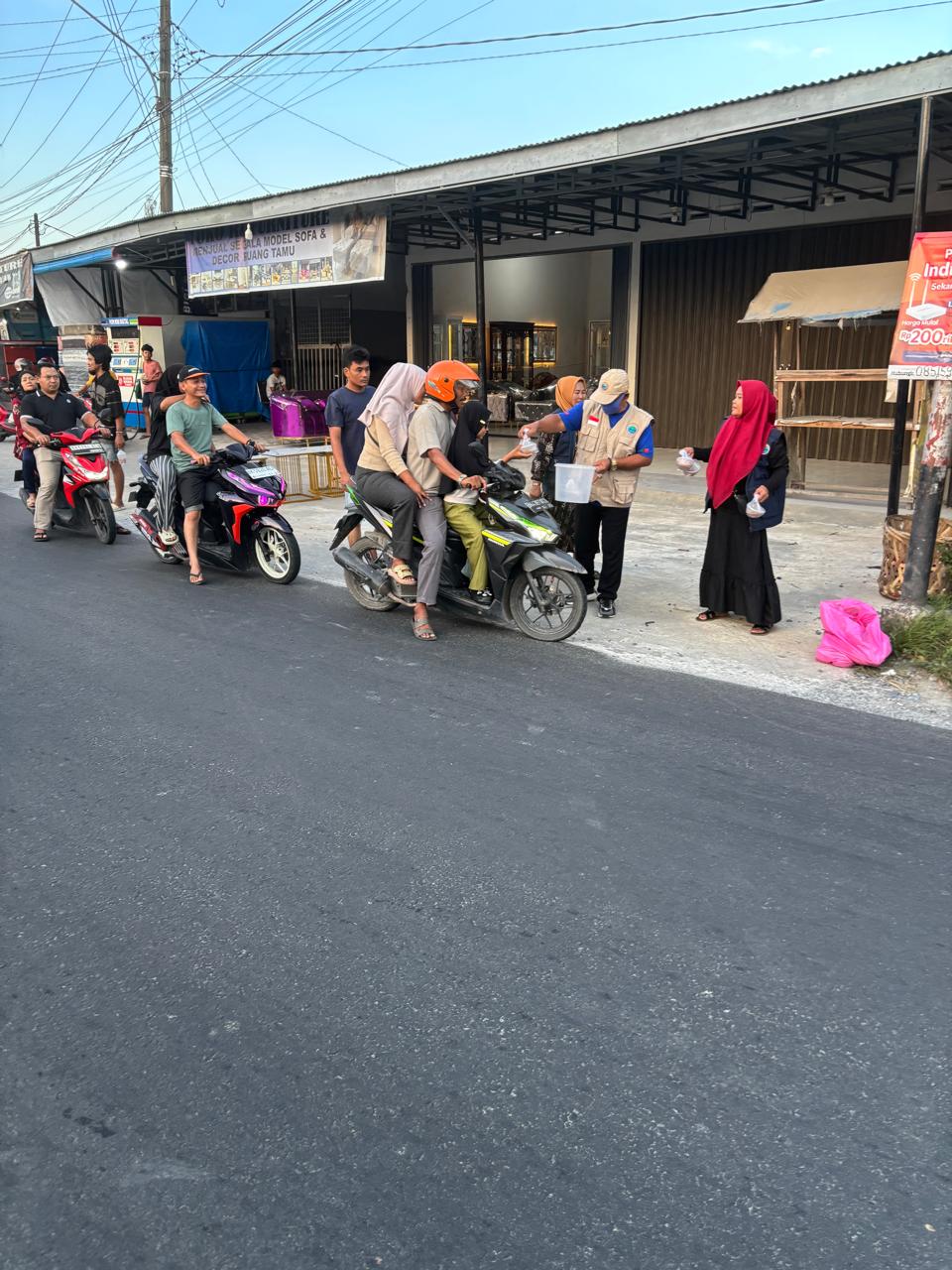 Kegiatan berlangsung dengan tertib dan penuh kebersamaan hingga seluruh paket takjil habis dibagikan kepada masyarakat.