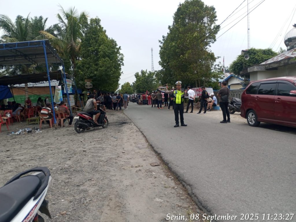 Aksi berlangsung di wilayah Tandem Hilir 1 dengan pengawalan aparat keamanan. Meski membawa spanduk dan menyuarakan tuntutan dengan lantang, situasi tetap kondusif dan tidak terjadi kericuhan.