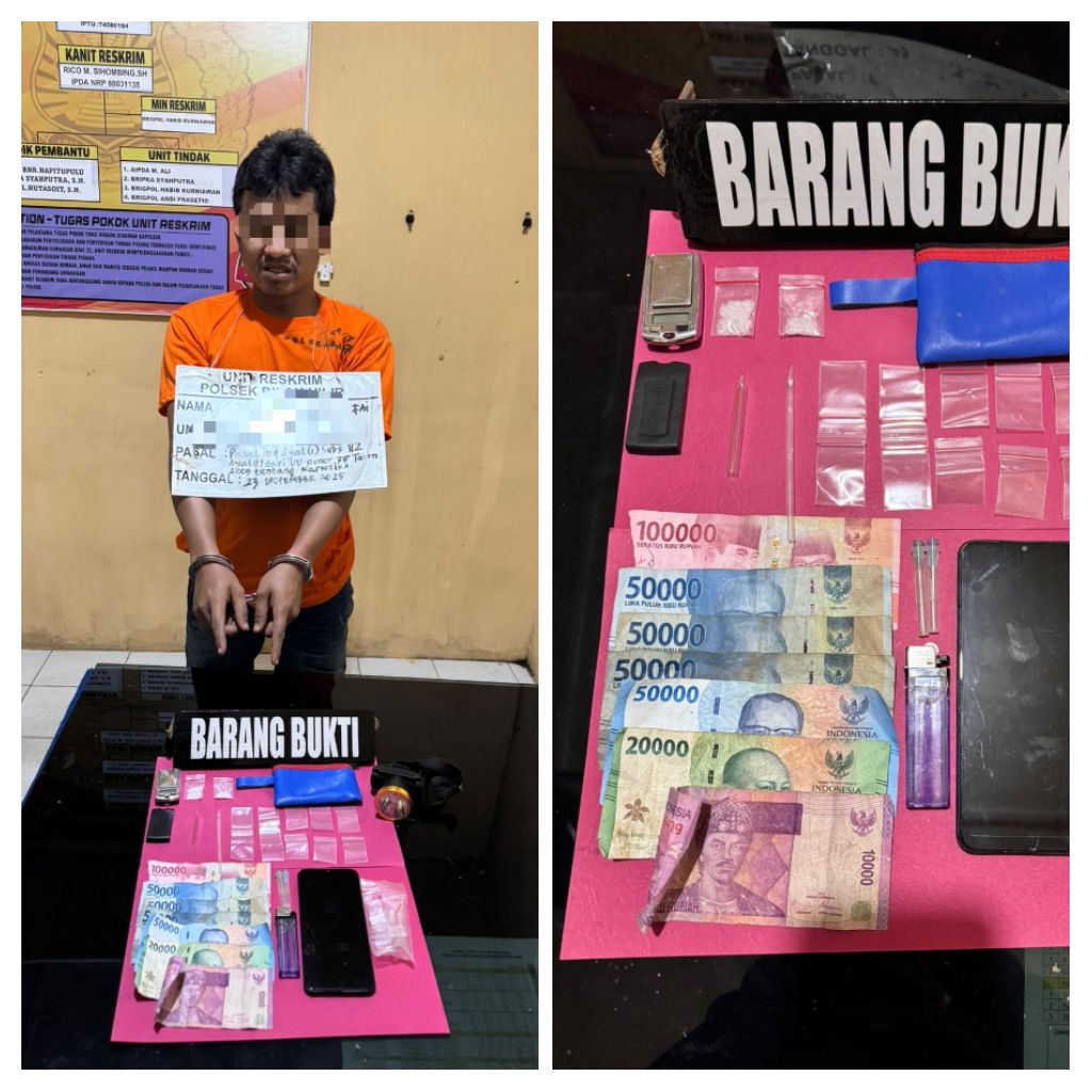 LABUHANBATU — Blusuk.online – Upaya pemberantasan peredaran narkotika kembali membuahkan hasil. Unit Reskrim Polsek Bilah Hilir Polres Labuhanbatu mengamankan seorang pria berinisial RL alias Pai, yang diduga kuat sebagai pengedar sabu, pada Minggu (23/11/2025) sekitar pukul 17.00 WIB di Dusun Tanjung Harapan B, Desa Tanjung Harapan, Kecamatan Pangkatan, Kabupaten Labuhanbatu.