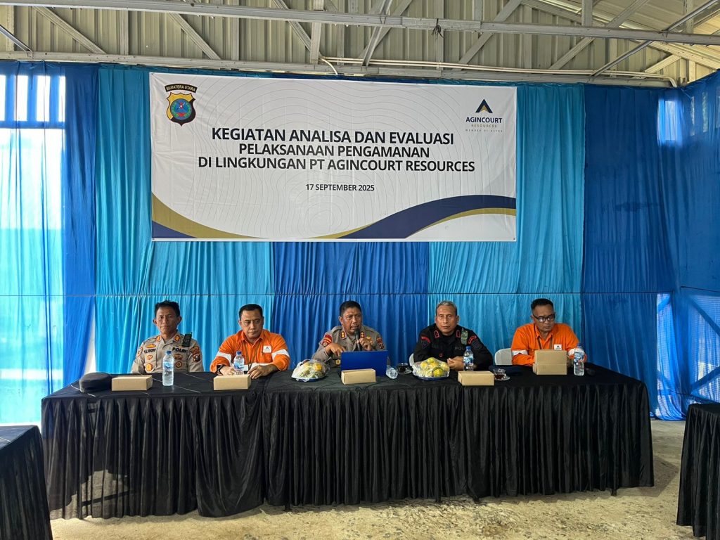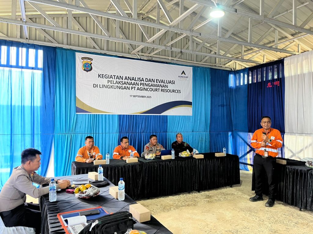 Blusuk.online – Dalam upaya meningkatkan sistem pengamanan di objek vital nasional, Direktorat Pengamanan Objek Vital (Ditpamobvit) Polda Sumatera Utara melaksanakan kegiatan Analisa dan Evaluasi (ANEV) terhadap pelaksanaan pengamanan di lingkungan PT Agincourt Resources (PT AR). Kegiatan ini berlangsung di kantor PT AR, Batangtoru, Tapanuli Selatan, pada Rabu, 17 September 2025.