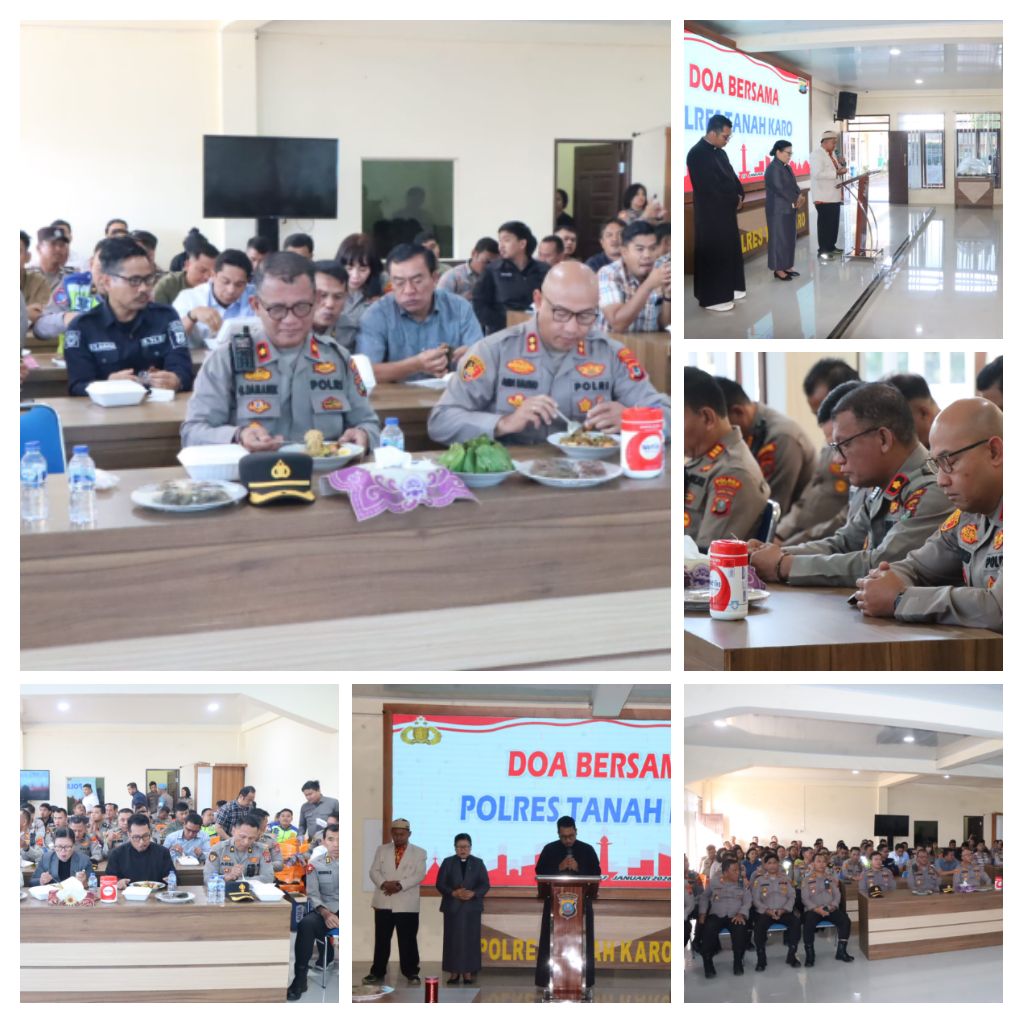 Karo – Blusuk.online – Polres Tanah Karo menggelar kegiatan doa bersama sebagai wujud rasa syukur sekaligus memohon kelancaran dalam pelaksanaan tugas kepolisian. Kegiatan tersebut dilaksanakan pada Sabtu (17/1/2026) pagi di Aula Pur Pur Sage, Mapolres Tanah Karo.