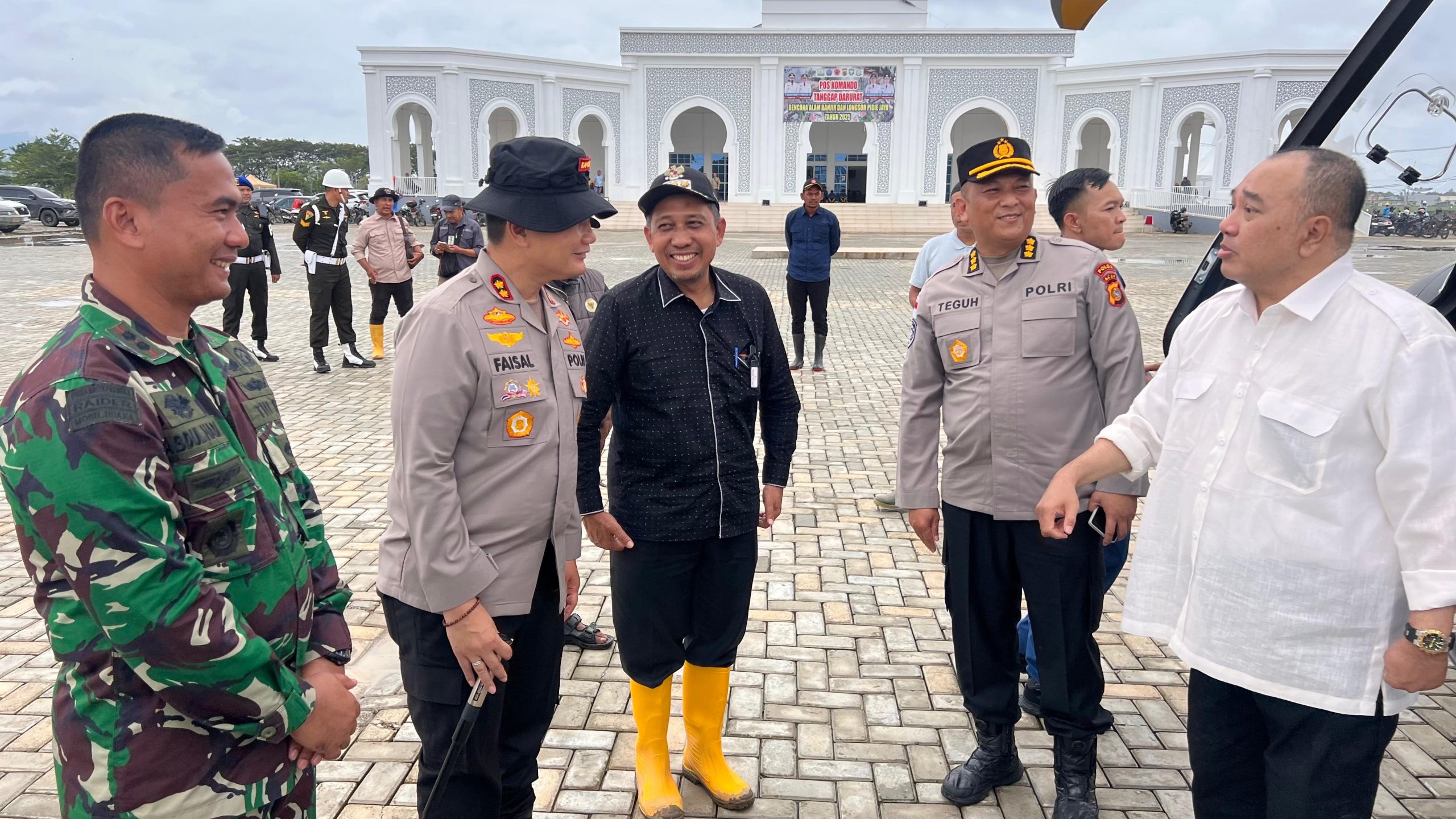 Kedatangan rombongan disambut langsung oleh Kapolres Pidie Jaya AKBP Ahmad Faisal Pasaribu bersama Bupati Pidie Jaya H. Sibral Makasyi.