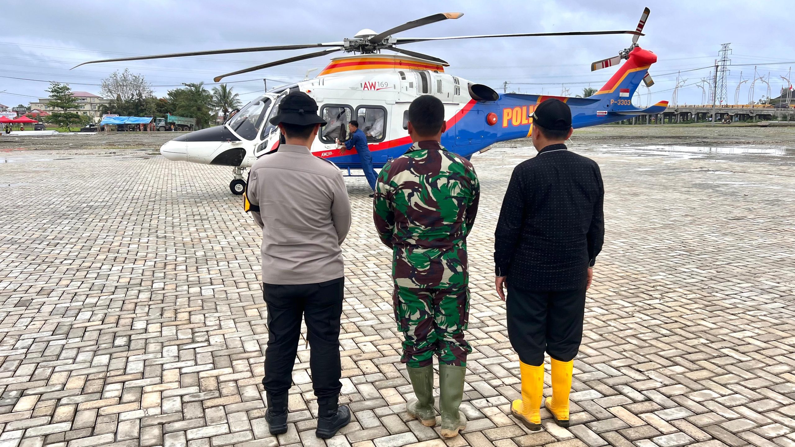 Gunakan Helikopter AW 169 Polri, Staf Ahli Penasihat Khusus Presiden Tinjau Lokasi Bencana di Pidie Jaya