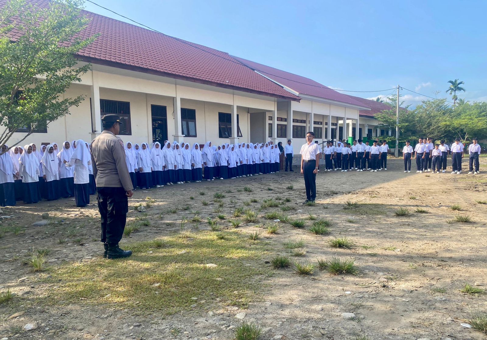 “Kami ingin adik-adik menjadi generasi yang cerdas, berakhlak, dan taat hukum. Lingkungan sekolah harus menjadi tempat yang aman, nyaman, dan bebas dari kekerasan,” ujar Ipda Hasanuddin di hadapan peserta upacara.