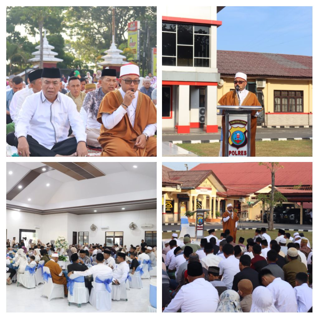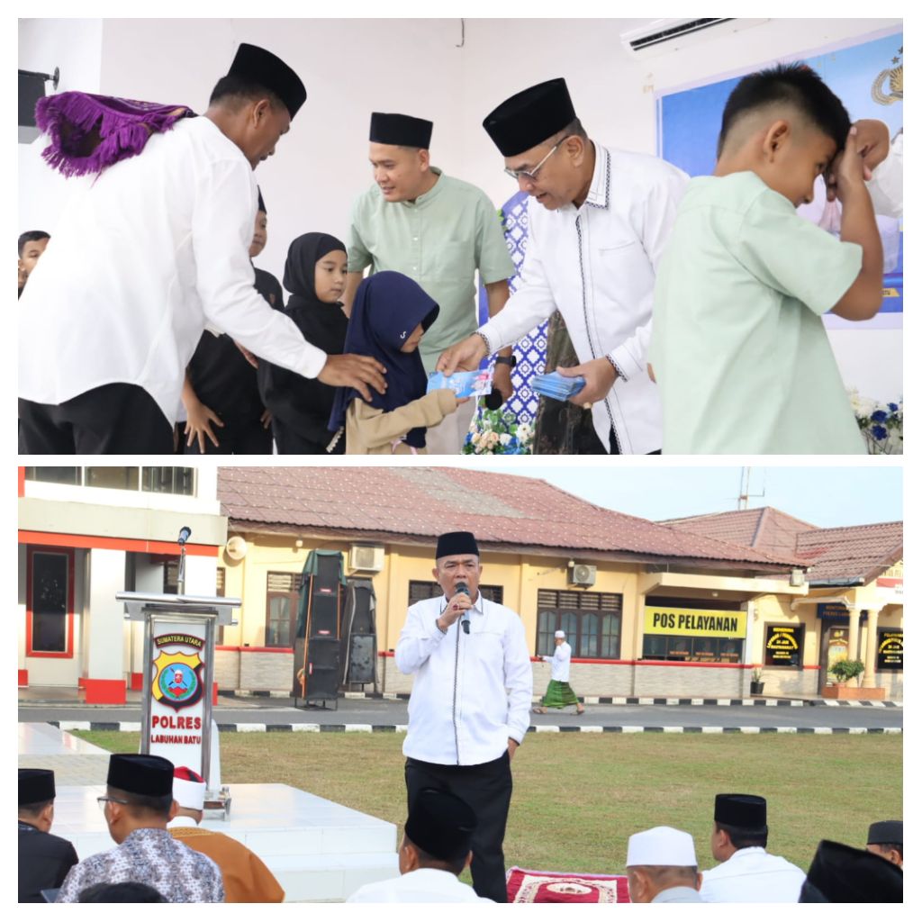 LABUHANBATU – Blusuk.online – Suasana penuh khidmat dan kehangatan menyelimuti pelaksanaan Sholat Idul Fitri 1447 Hijriah yang digelar oleh keluarga besar Polres Labuhanbatu bersama masyarakat di Mapolres Labuhanbatu, Jalan MH. Thamrin, Rantauprapat, Kabupaten Labuhanbatu.