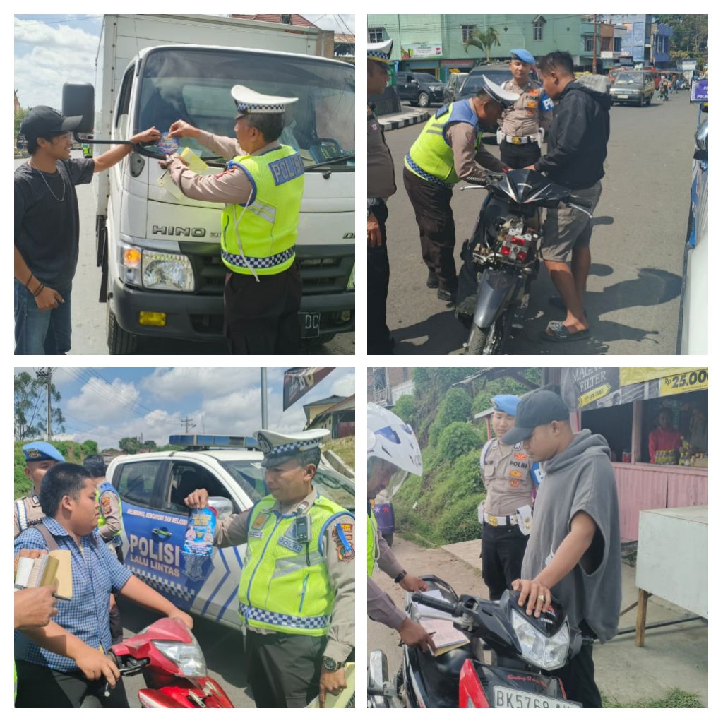 Kanit Regident Satlantas Polres Tanah Karo, Ipda Fery M. Galingging, S.H., menyampaikan bahwa kegiatan tersebut bertujuan untuk meningkatkan kesadaran masyarakat dalam berlalu lintas, khususnya di kawasan dengan tingkat kepadatan arus lalu lintas yang cukup tinggi.