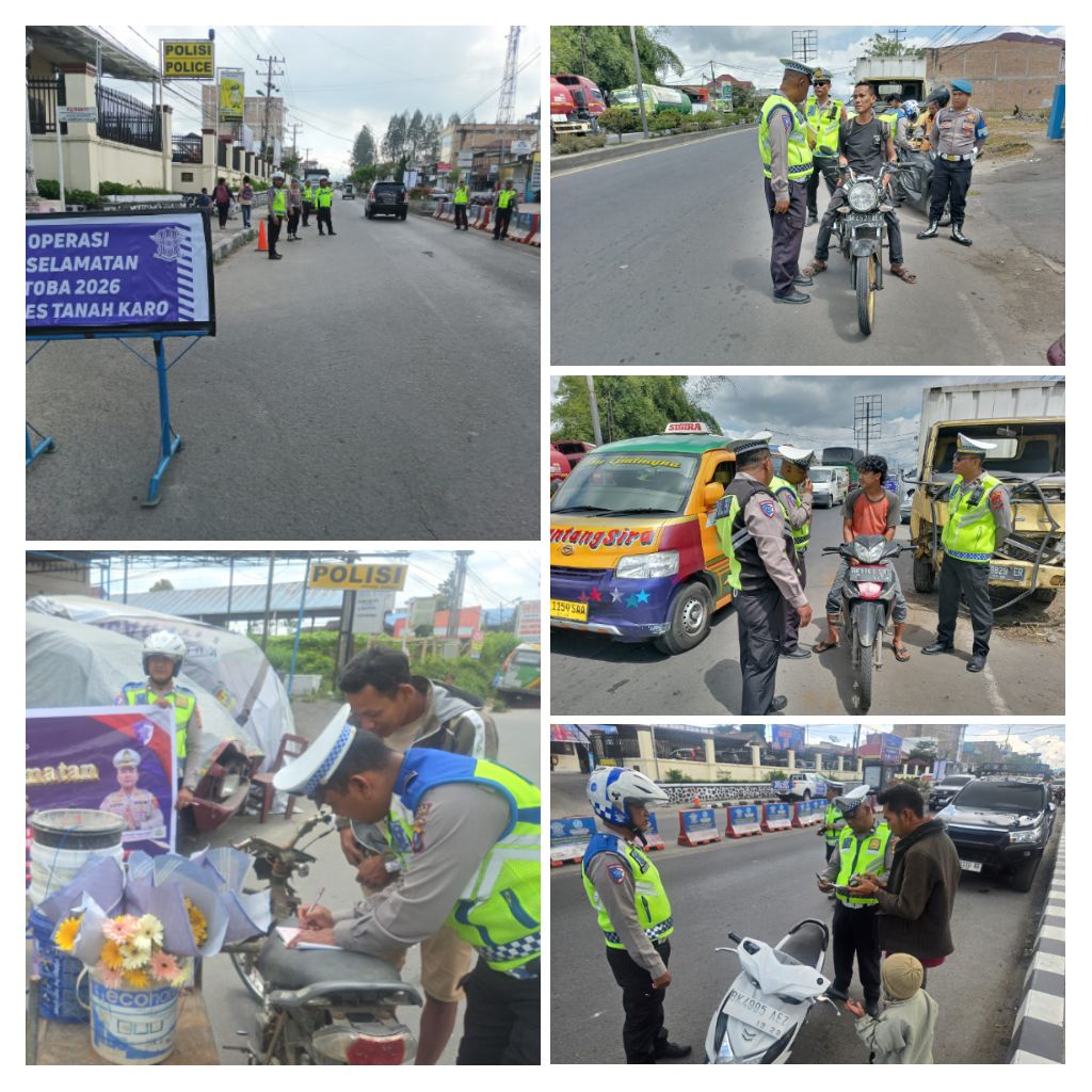 KARO – Blusuk.online – Pelaksanaan Operasi Keselamatan Toba 2026 di wilayah hukum Polres Tanah Karo memasuki hari keenam. Satuan Lalu Lintas Polres Tanah Karo kembali menggelar kegiatan sosialisasi dan penegakan tertib berlalu lintas di dua titik strategis di Kota Kabanjahe, Sabtu (7/2/2026).