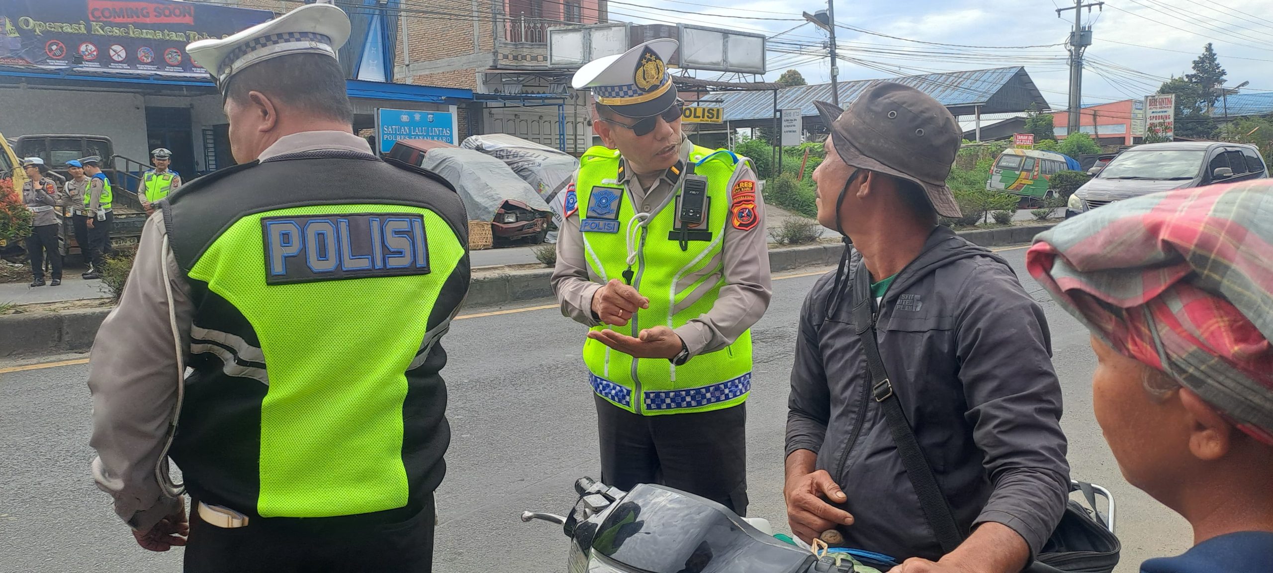 Kegiatan tersebut dipimpin oleh Kanit Patroli Satlantas Polres Tanah Karo, Ipda Herwansyah, bersama personel Satlantas lainnya.