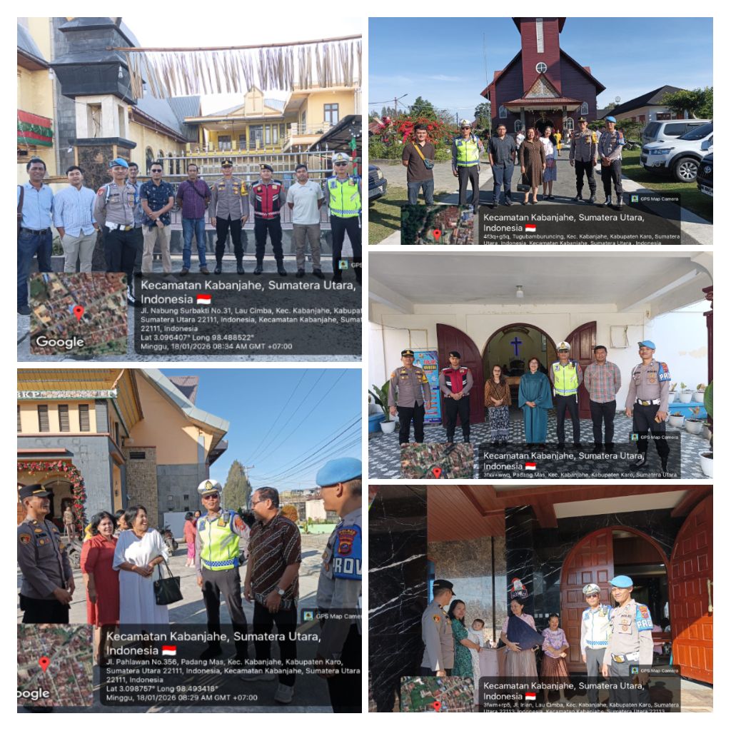 Karo – Blusuk.online – Untuk memberikan rasa aman dan nyaman kepada masyarakat dalam melaksanakan ibadah Minggu, Polres Tanah Karo melaksanakan kegiatan pengecekan, pengawasan, serta patroli mobile terhadap personel pengamanan di gereja-gereja seputaran Kota Kabanjahe, Minggu (18/1/2026) sekira pukul 08.30 WIB.