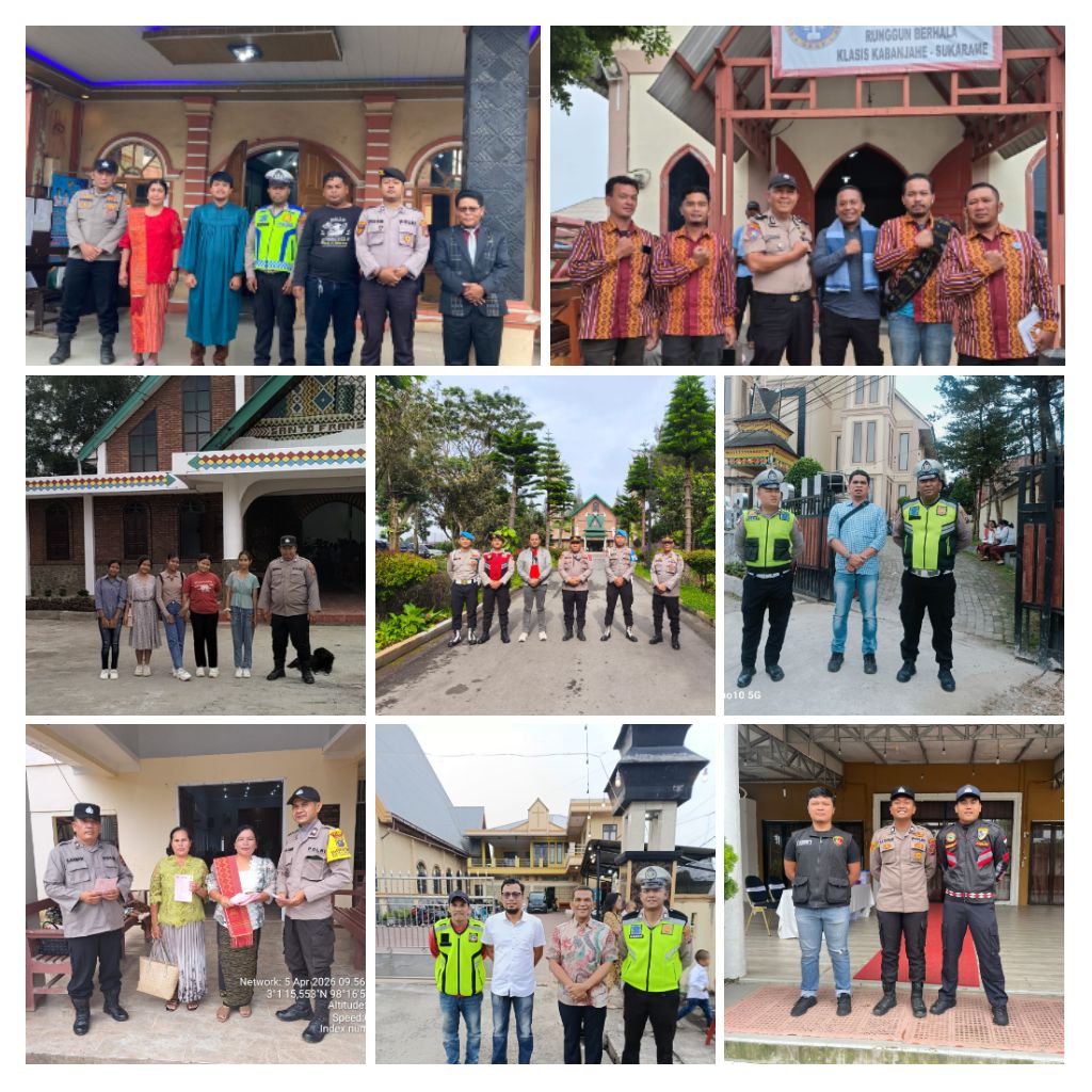 Kapolres Karo AKBP Pebriandi Haloho, S.H., S.I.K., M.Si., menyampaikan bahwa pengamanan telah dilaksanakan secara optimal sejak pagi hari di sejumlah gereja yang menggelar ibadah.