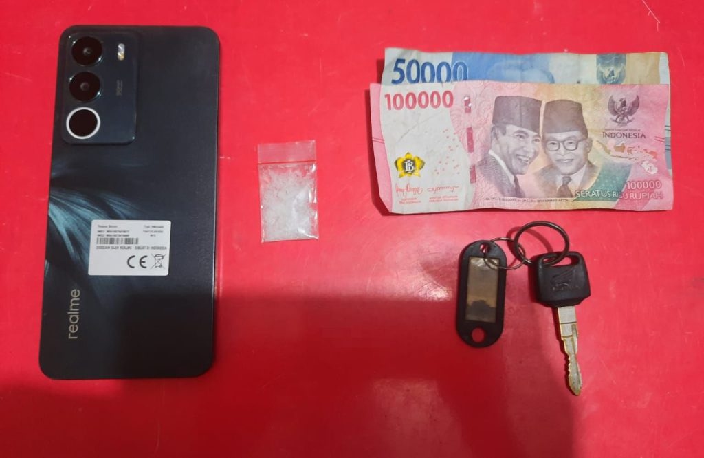 Dalam penindakan ini, petugas berhasil menyita barang bukti berupa satu bungkus plastik klip sedang berisi narkotika jenis sabu dengan berat bruto 1,33 gram. Selain itu, turut diamankan satu unit handphone android merek Realme, uang tunai sejumlah Rp150.000, serta satu unit sepeda motor Honda CRF berwarna hitam tanpa plat nomor.