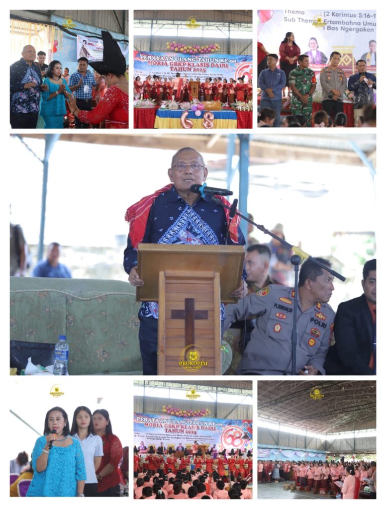 Dalam sambutannya, Bupati Dairi, Ir. Vickner Sinaga, M.M menyampaikan Apresiasi dan Ucapan Selamat Ulang Tahun Kepada Seluruh Moria GBKP Klasis Dairi. Bupati Dairi menegaskan bahwa, Peran Moria sebagai Wadah Perempuan Gereja Batak Karo Protestan memiliki Kontribusi Besar dalam Membangun Karakter Keluarga yang Beriman dan Bermoral Ditengah Masyarakat.