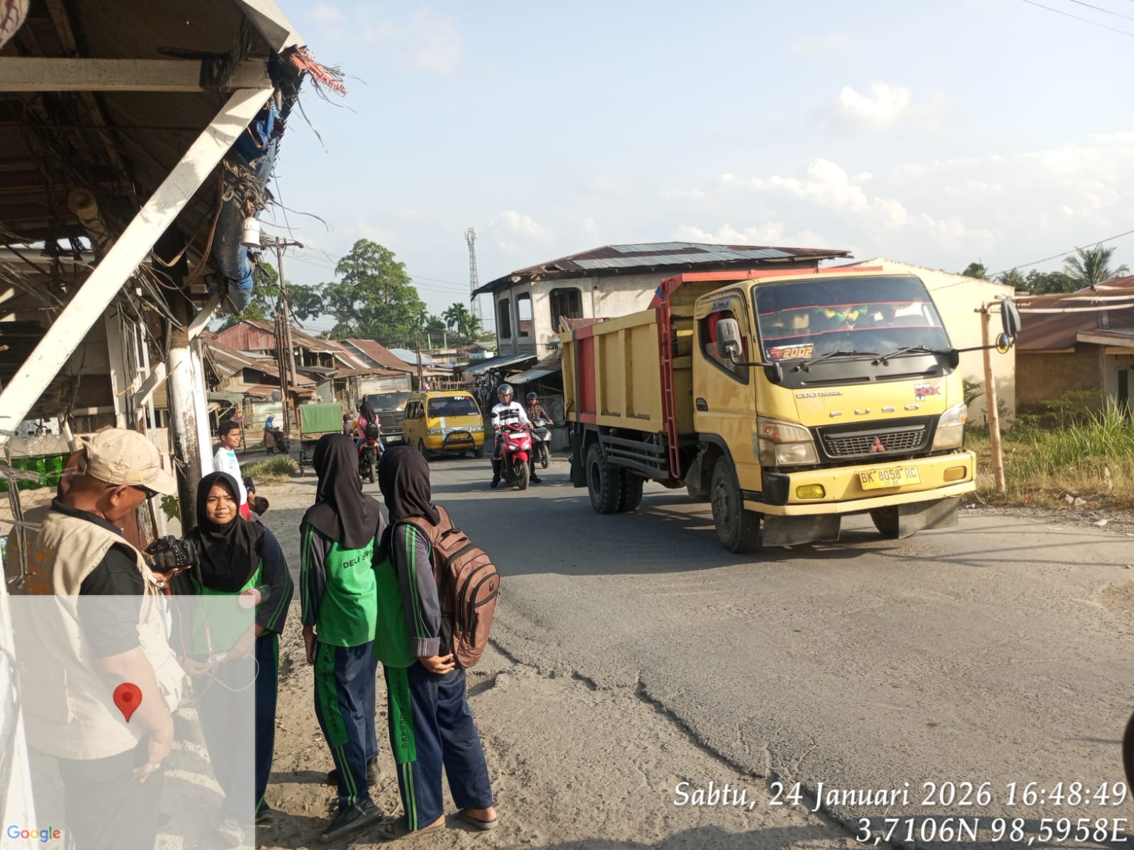 Kondisi jalan protokol di Desa Klambir, Kecamatan Hamparan Perak, kian memprihatinkan. Kerusakan parah pada badan jalan membuat aktivitas pengguna jalan terganggu, terutama di sekitar Jembatan Titi Payung yang menjadi jalur utama penghubung masyarakat.