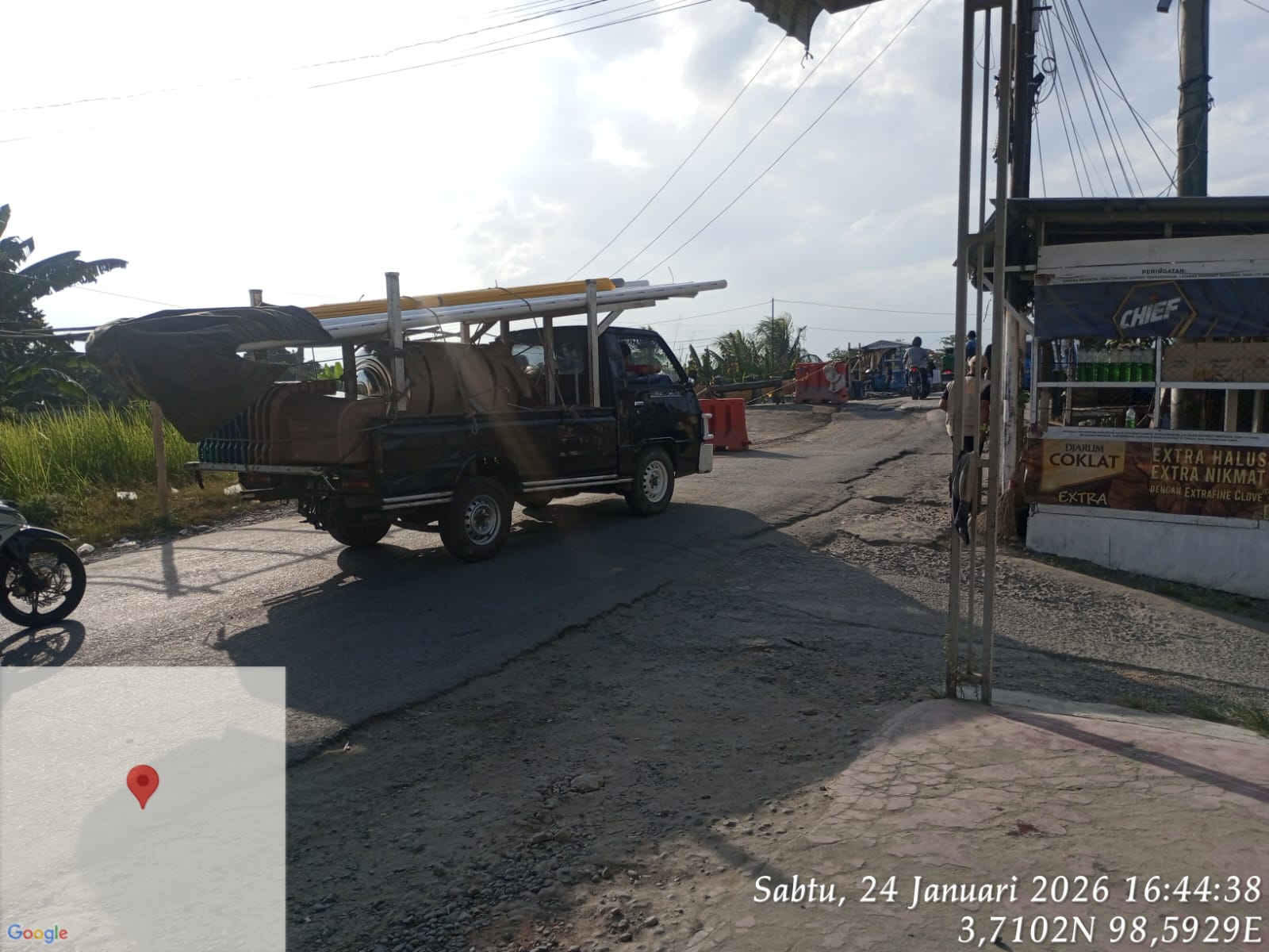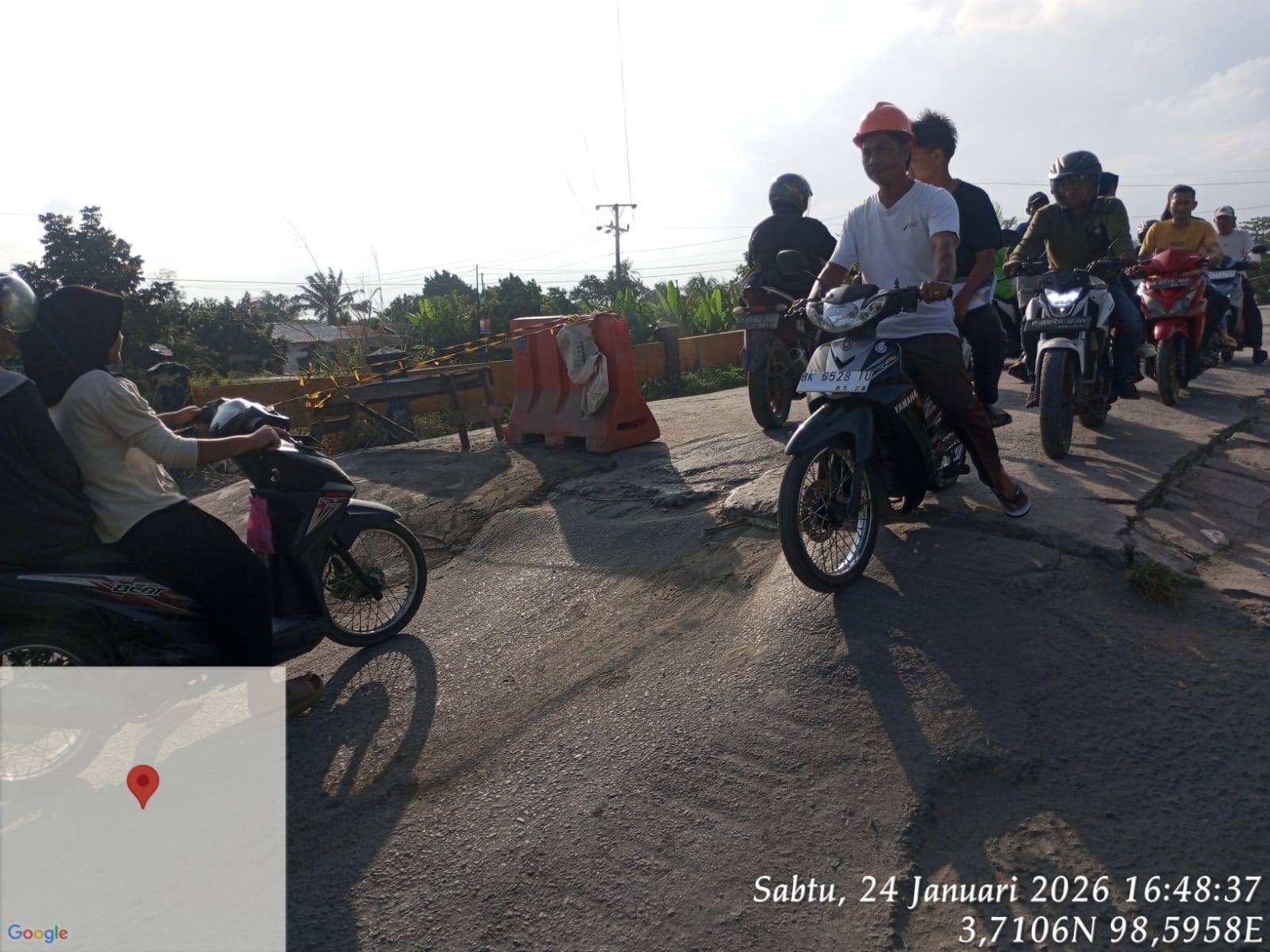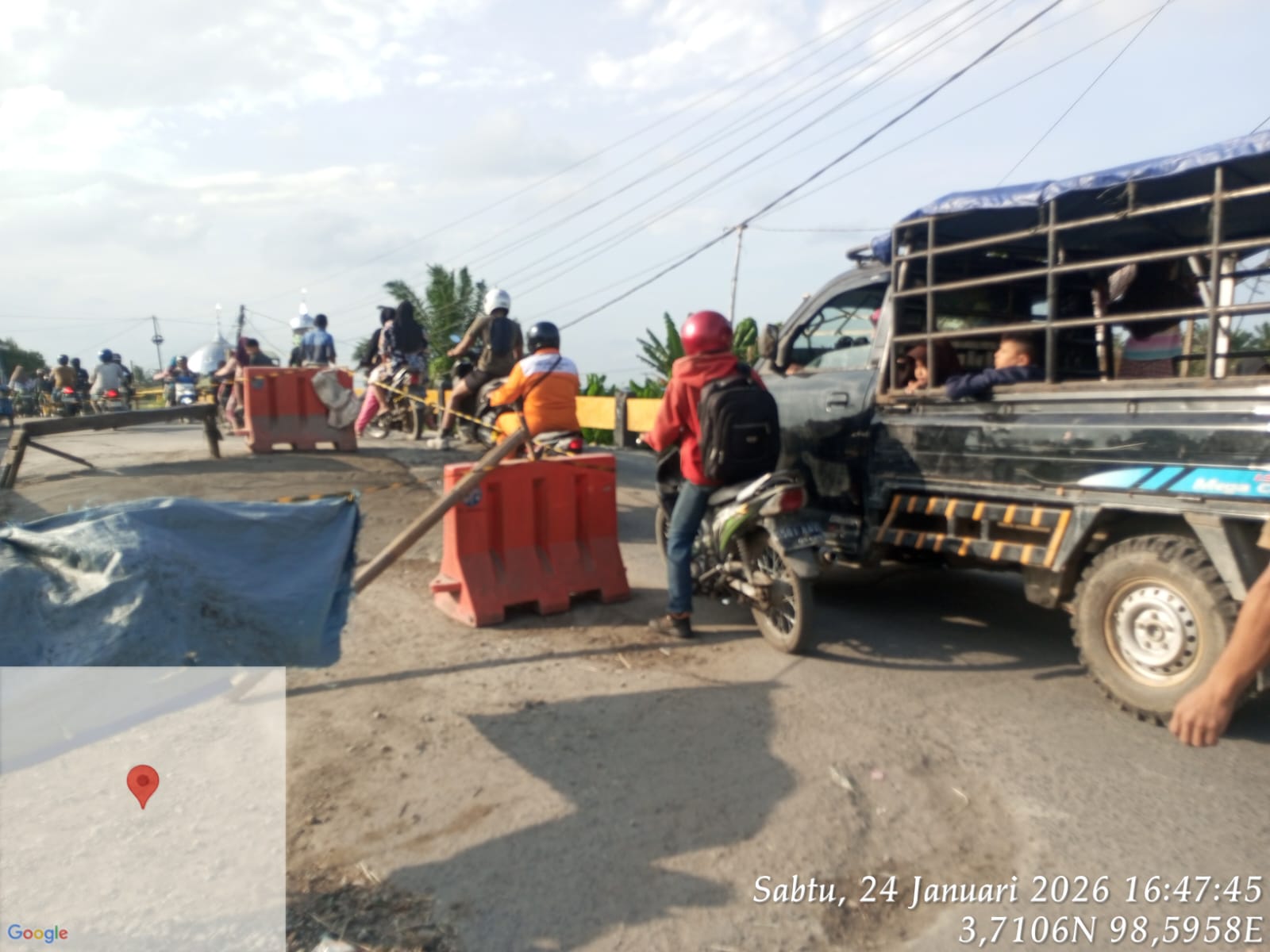 Jalan Protokol Desa Klambir Rusak Parah, Pengguna Jalan Terpaksa Antre di Ujung Jembatan