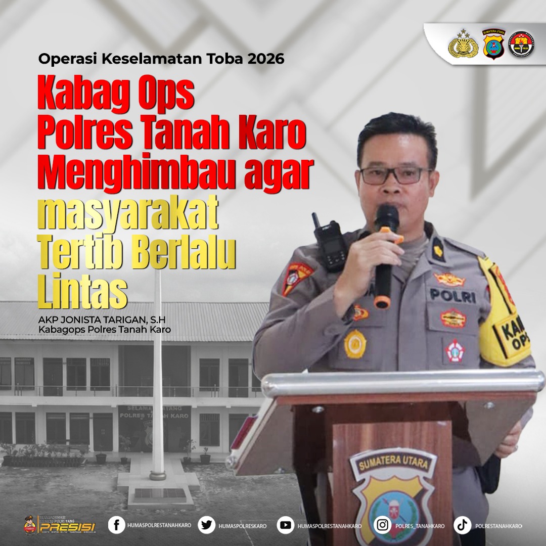 Kepala Bagian Operasional (Kabag Ops) Polres Tanah Karo, Kompol Jonista Tarigan, S.H., selaku Kepala Pengendali Operasi (Karendal Ops), mengimbau seluruh lapisan masyarakat agar selalu mematuhi aturan lalu lintas dan mengutamakan keselamatan saat berkendara di jalan raya.
