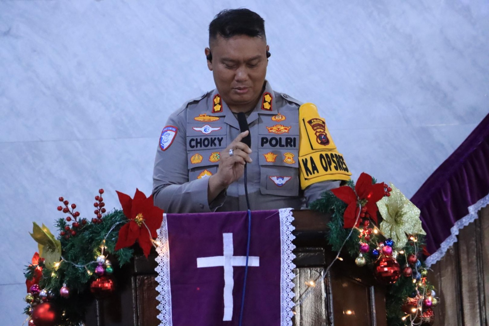 Blusuk.online – polreslabuhanbatu – Kapolres Labuhanbatu AKBP Choky Sentosa Meliala, S.I.K., S.H., M.H., menghadiri Perayaan Natal Keluarga Besar TK, SD, SMP, dan SMA Yayasan Kemala Bhayangkari Cabang Labuhanbatu yang dilaksanakan di Gereja HKBP Sei Tawar Rantauprapat, Kecamatan Rantau Utara, Kabupaten Labuhanbatu, pada Jumat, 19 Desember 2025.