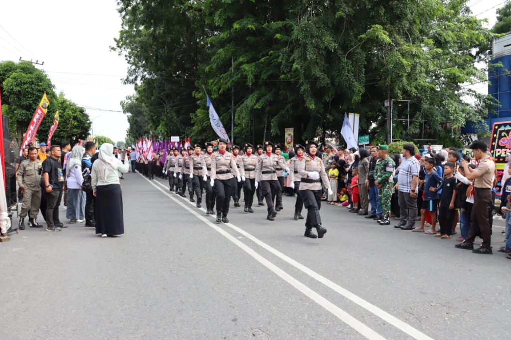 Kapolres Labuhanbatu Hadiri Senam Pagi dan Pawai HUT ke-80 Pemkab Labuhanbatu