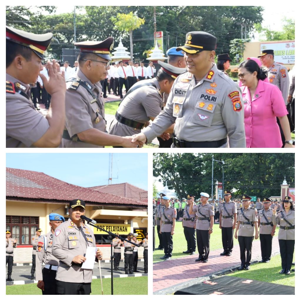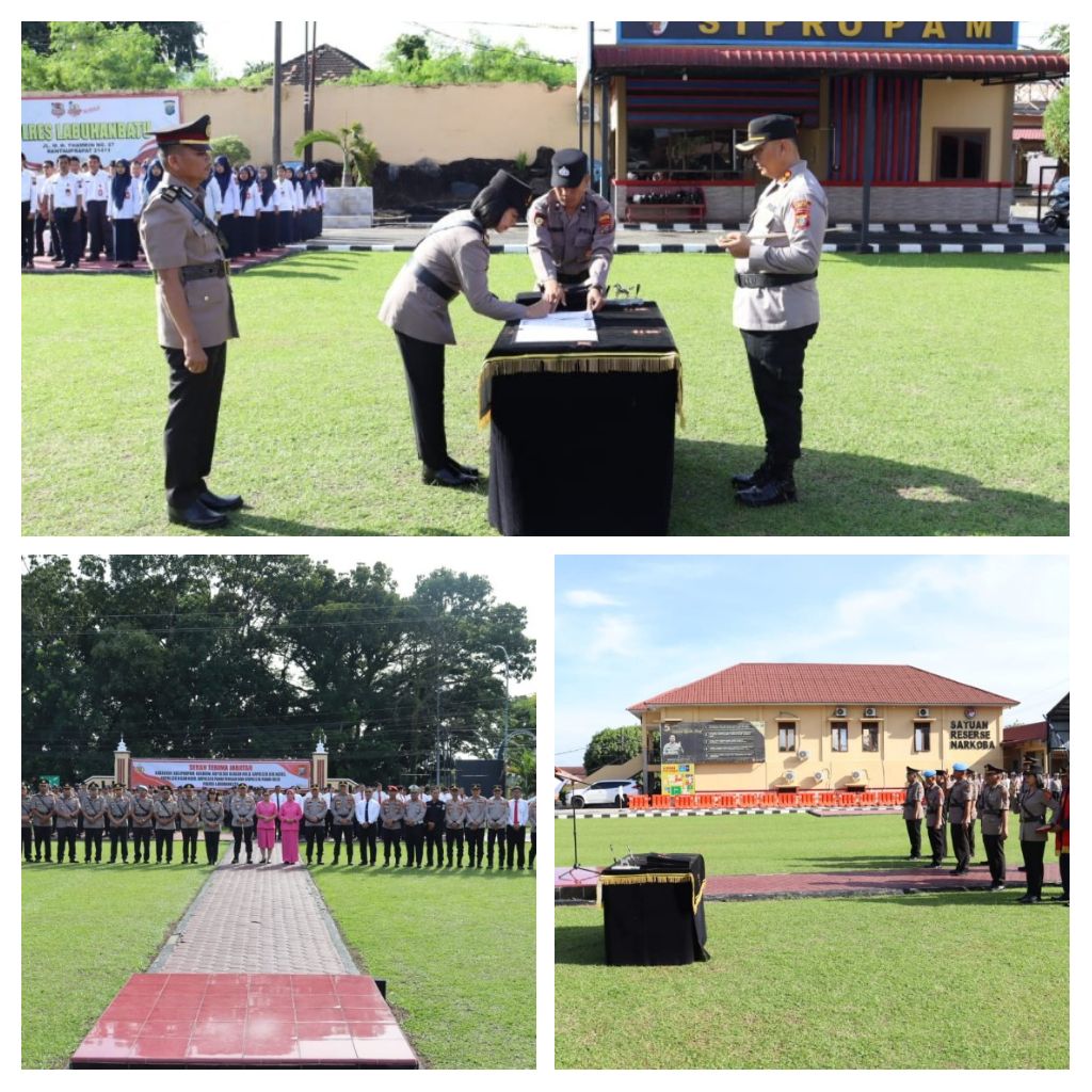 Upacara sertijab berlangsung dengan khidmat dan dihadiri oleh para pejabat utama Polres Labuhanbatu, Kapolsek jajaran, serta personel lainnya.