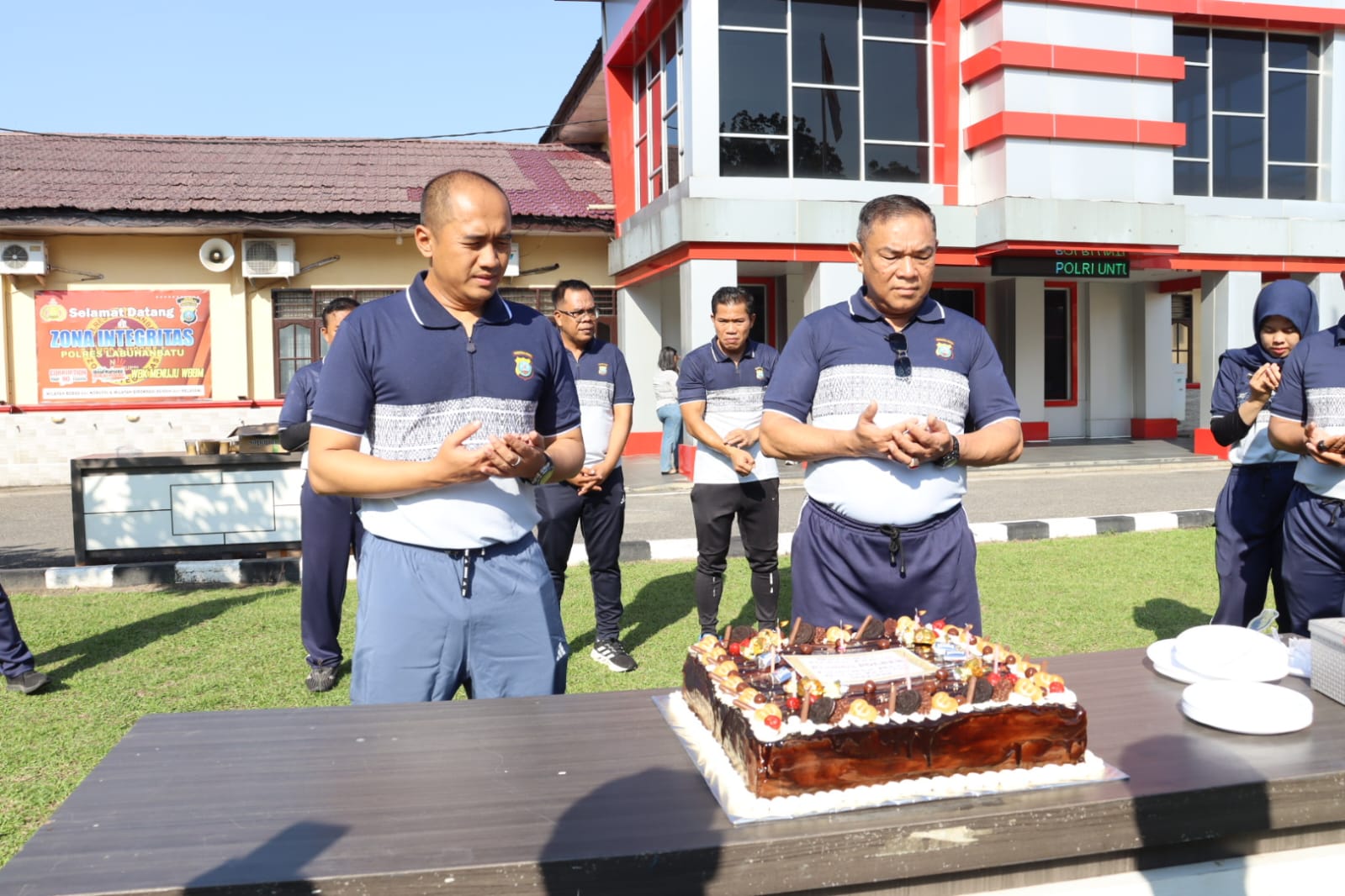 Blusuk.online – polreslabuhanbatu – LABUHANBATU – Kapolres Labuhanbatu AKBP Wahyu Endrajaya, S.I.K., M.Si., melaksanakan kegiatan perayaan ulang tahun bagi personel Polres Labuhanbatu yang lahir pada bulan Januari.