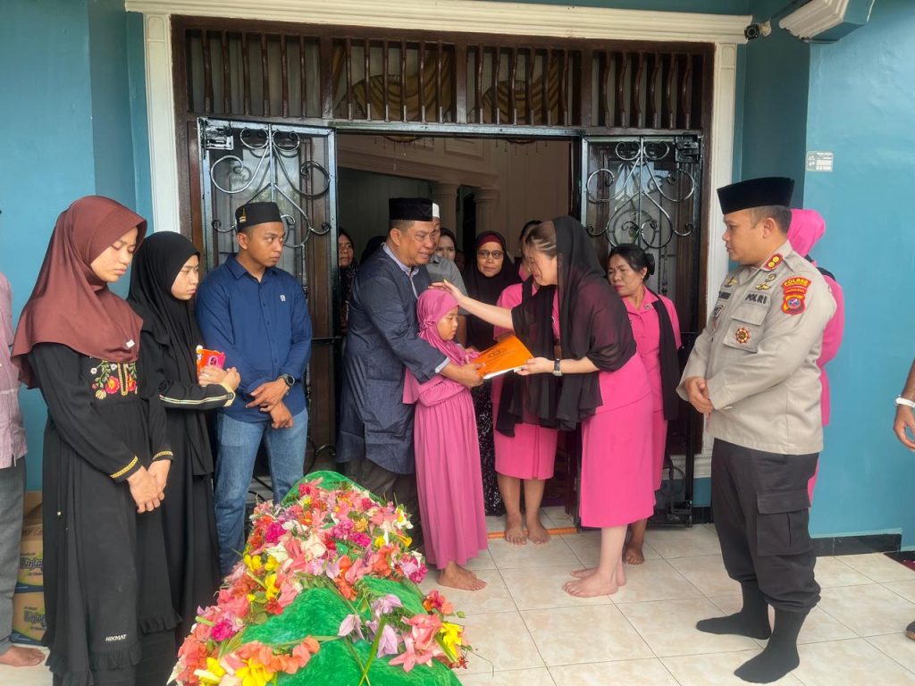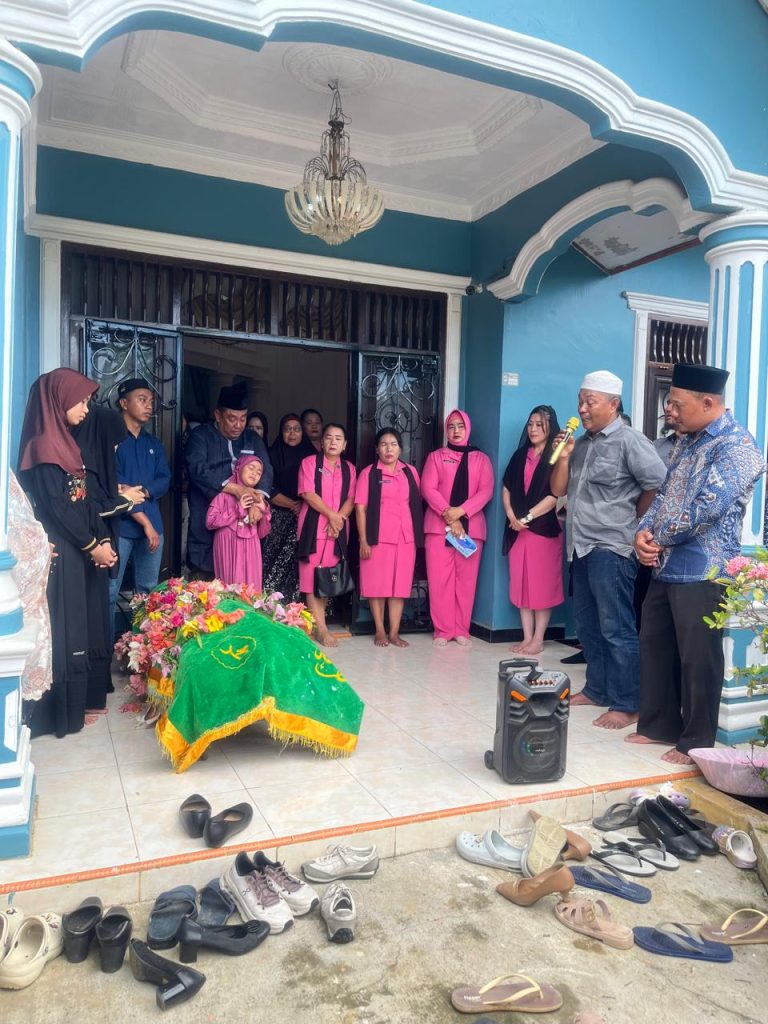 Ketua Bhayangkari Cabang Labuhanbatu Selatan, Ny. Olivia Aditya, turut hadir bersama anggota Bhayangkari lainnya untuk memberikan dukungan moril kepada keluarga yang berduka.