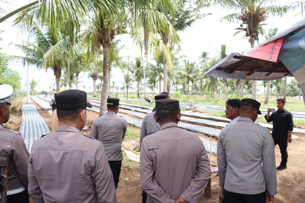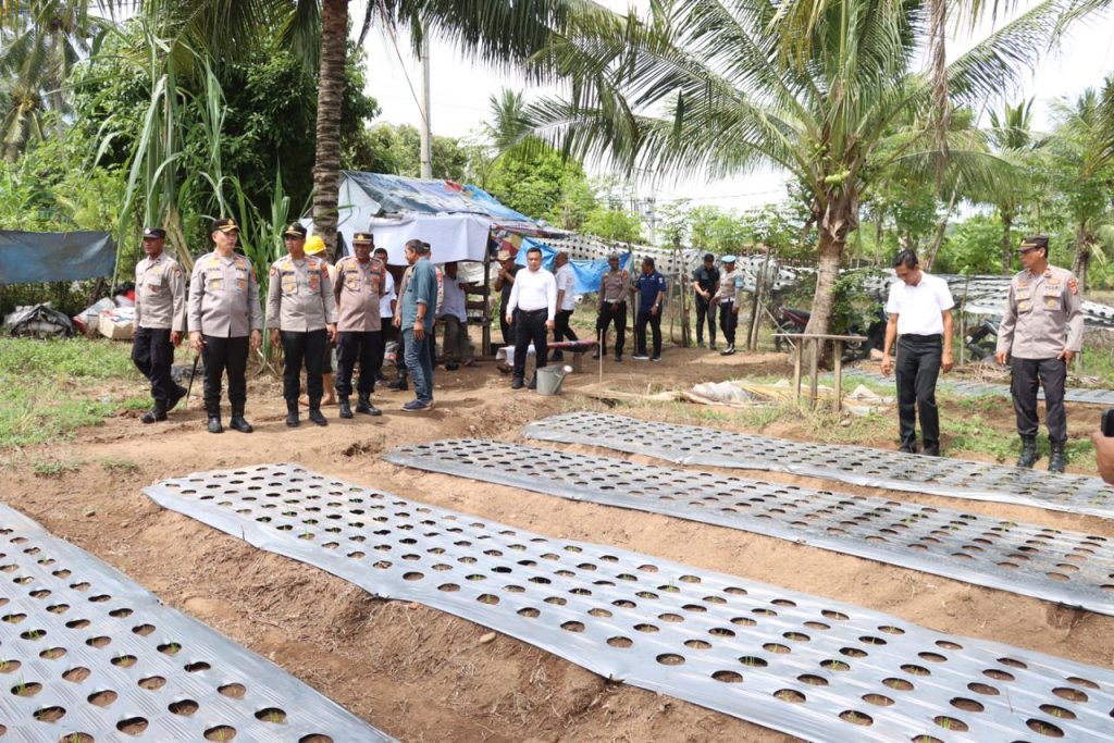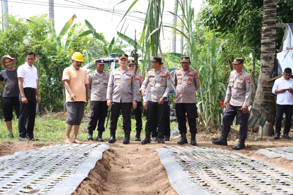 PIDIE JAYA, blusuk online– Wujud dukungan terhadap program ketahanan pangan terus ditunjukkan Polres Pidie Jaya. Rabu (1/10/2025), Kapolres Pidie Jaya AKBP Ahmad Faisal Pasaribu, S.H., S.I.K., M.H., turun langsung meninjau lahan Desa Mandiri di Kebun Gampong Paya, Kecamatan Trienggadeng.