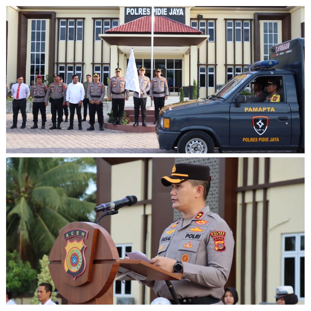 Acara kemudian dilanjutkan dengan pelepasan kendaraan dinas Pamapta SPKT sebagai simbol kesiapan personel dalam menjalankan tugas pelayanan dan pengamanan masyarakat secara optimal di wilayah hukum Polres Pidie Jaya.