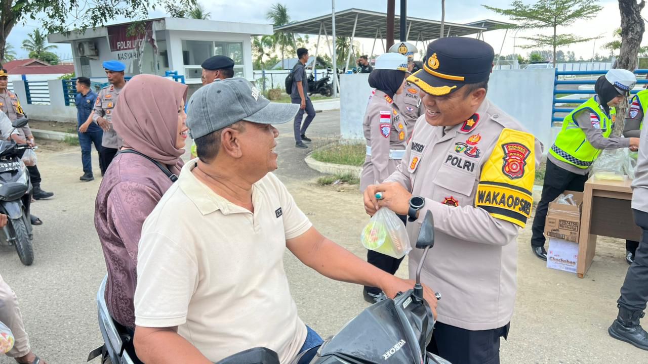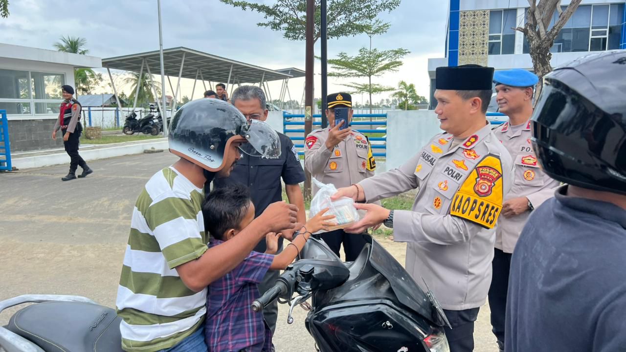 Kapolres Pidie Jaya AKBP Ahmad Faisal Pasaribu menyampaikan bahwa pembagian takjil ini merupakan bentuk kepedulian Polri kepada masyarakat, khususnya para pengguna jalan yang masih beraktivitas menjelang waktu berbuka puasa.