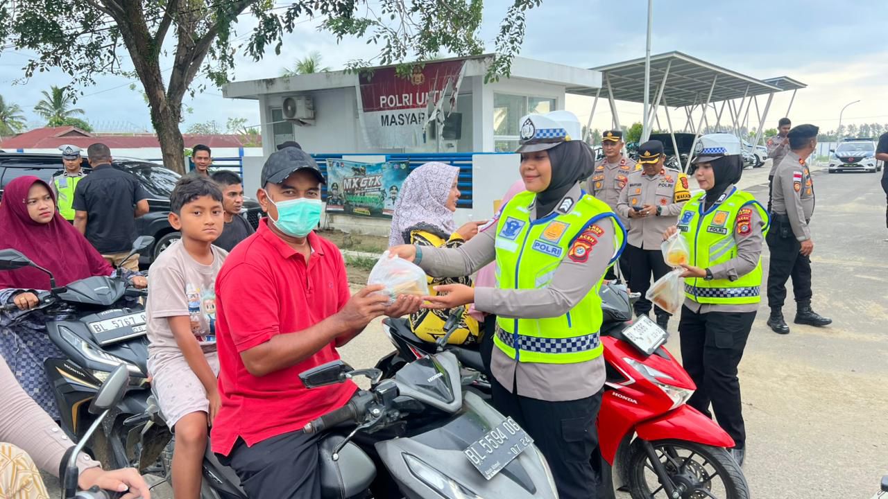 Takjil dibagikan kepada pengendara dan masyarakat yang melintas di lokasi kegiatan. Selain berbagi, personel Polres Pidie Jaya juga menyampaikan imbauan kamtibmas dan mengingatkan masyarakat untuk tetap tertib berlalu lintas demi keselamatan bersama.