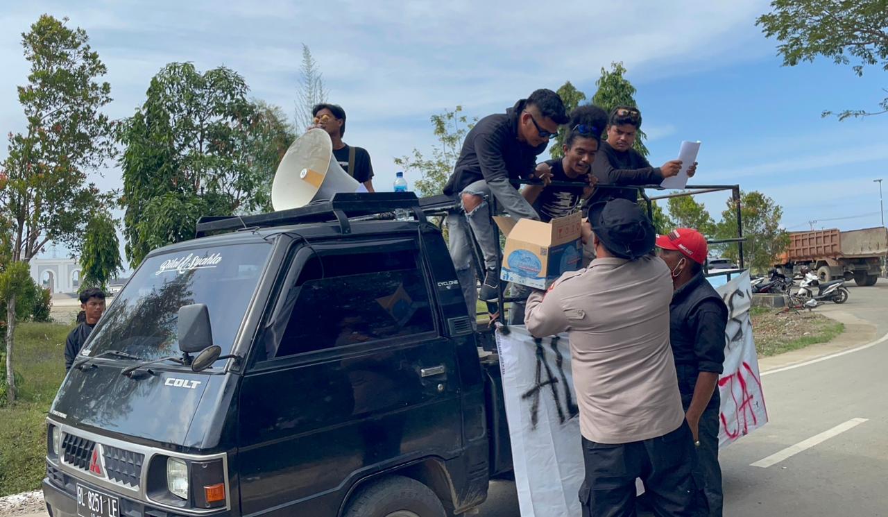 Aksi damai tersebut diikuti sekitar 25 orang massa yang menyampaikan aspirasi terkait penanganan dampak bencana alam di wilayah Kabupaten Pidie Jaya.