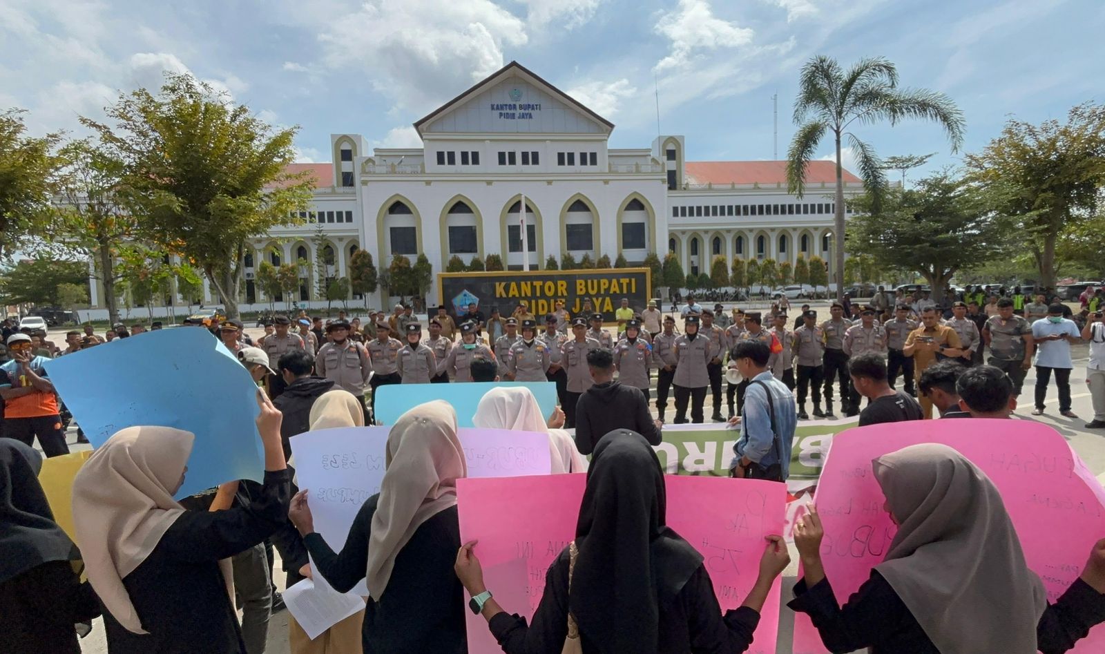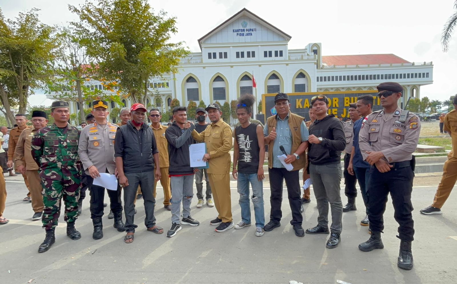 Menanggapi hal tersebut, Bupati Pidie Jaya bersama unsur Forkopimda langsung menemui perwakilan massa dan menggelar dialog terbuka.