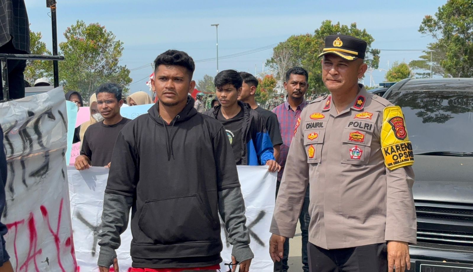 Kapolres Pidie Jaya Pimpin Pengamanan Aksi Damai di Kantor Bupati