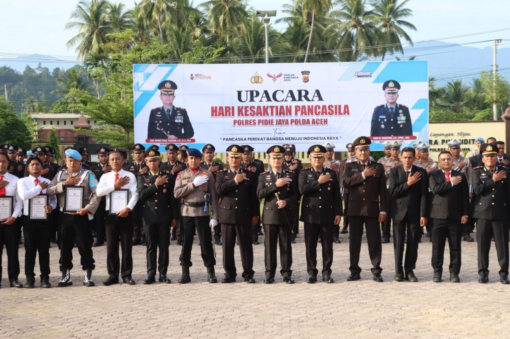 Upacara dipimpin langsung oleh Kapolres Pidie Jaya, AKBP Ahmad Faisal Pasaribu, S.H., S.I.K., M.H., yang bertindak sebagai Inspektur Upacara. Sedangkan Kabag SDM Polres Pidie Jaya, AKP Mahyuddin, S.H., M.M., ditunjuk sebagai Perwira Upacara.