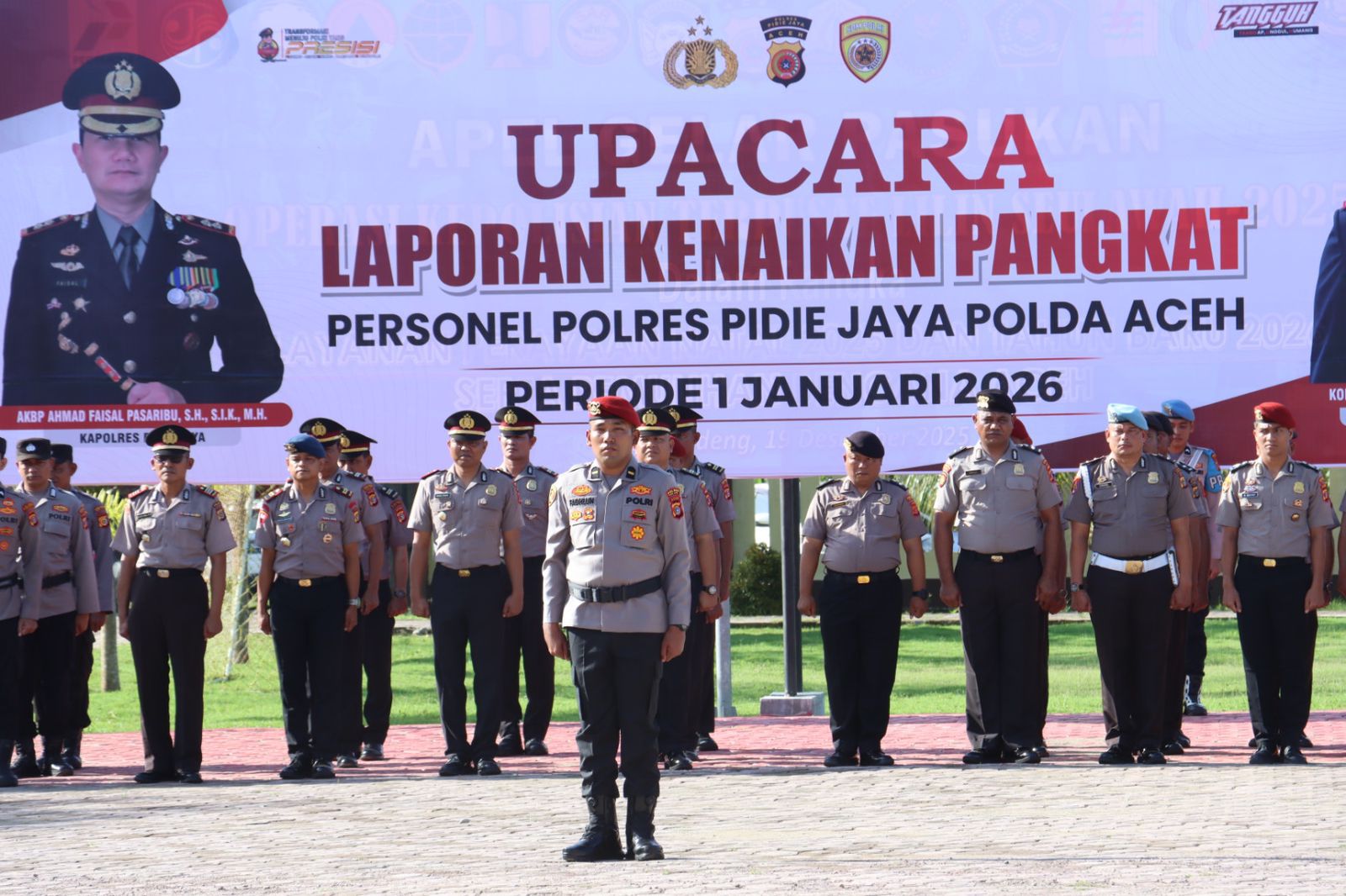 Kapolres Pidie Jaya Pimpin Upacara Kenaikan Pangkat 60 Personel Periode 1 Januari 2026