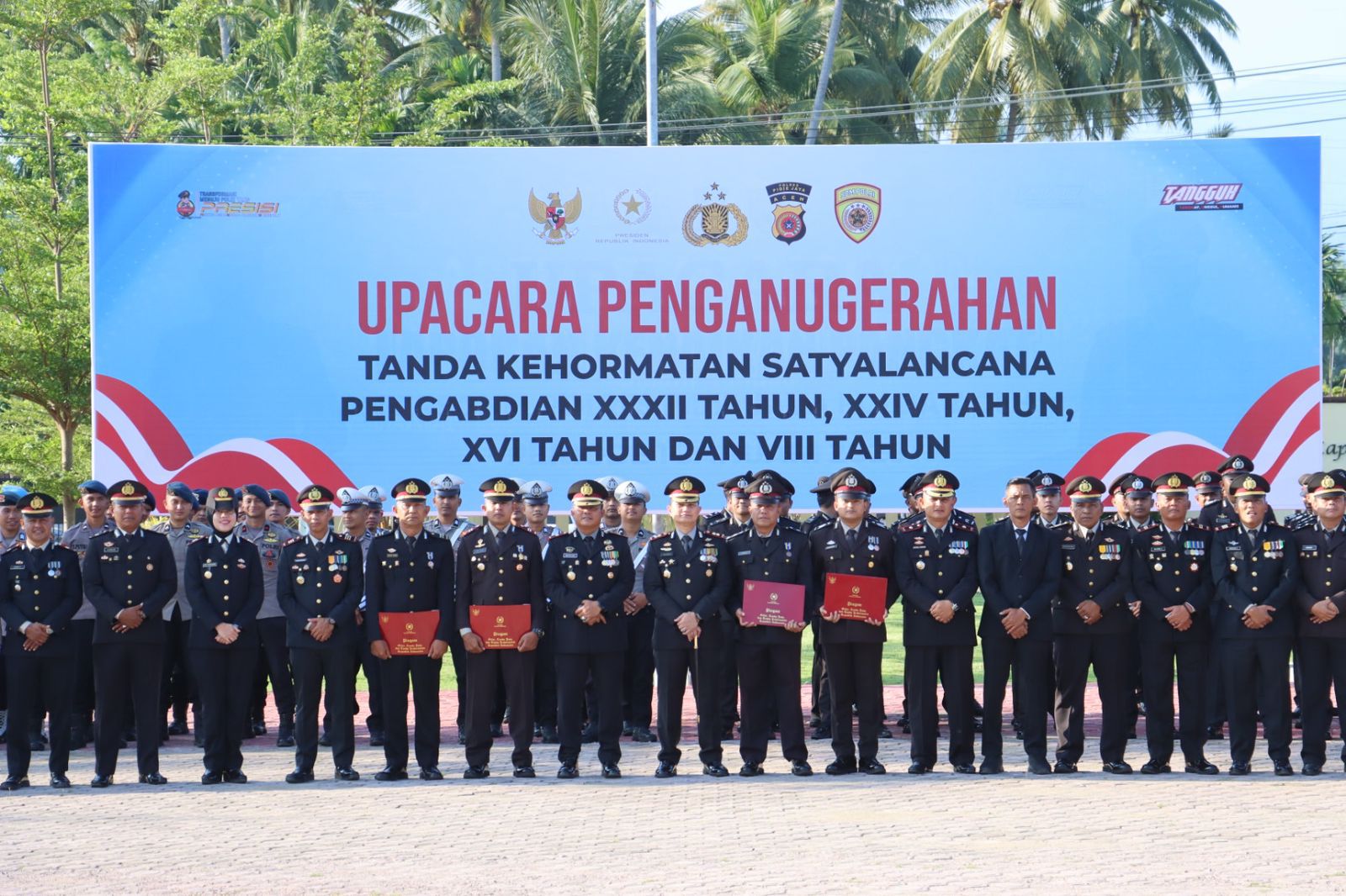 Pada kesempatan tersebut, sebanyak 45 personel Polres Pidie Jaya menerima Tanda Kehormatan Satyalancana Pengabdian dengan rincian Satyalancana Pengabdian 32 Tahun sebanyak 4 personel, Satyalancana Pengabdian 24 Tahun sebanyak 6 personel, Satyalancana Pengabdian 16 Tahun sebanyak 9 personel, dan Satyalancana Pengabdian 8 Tahun sebanyak 26 personel.