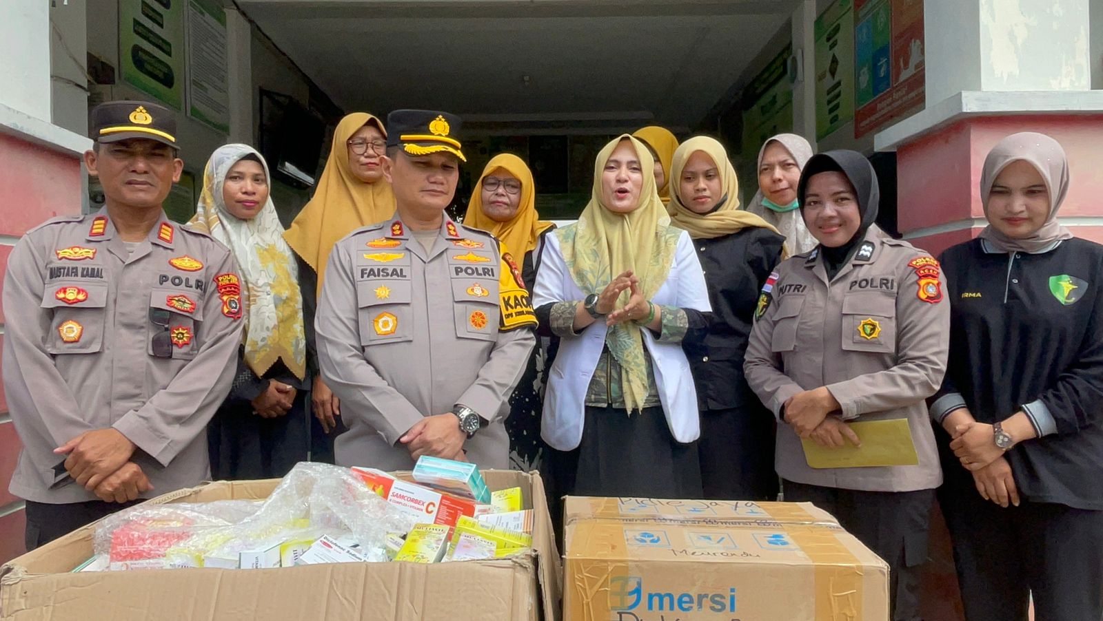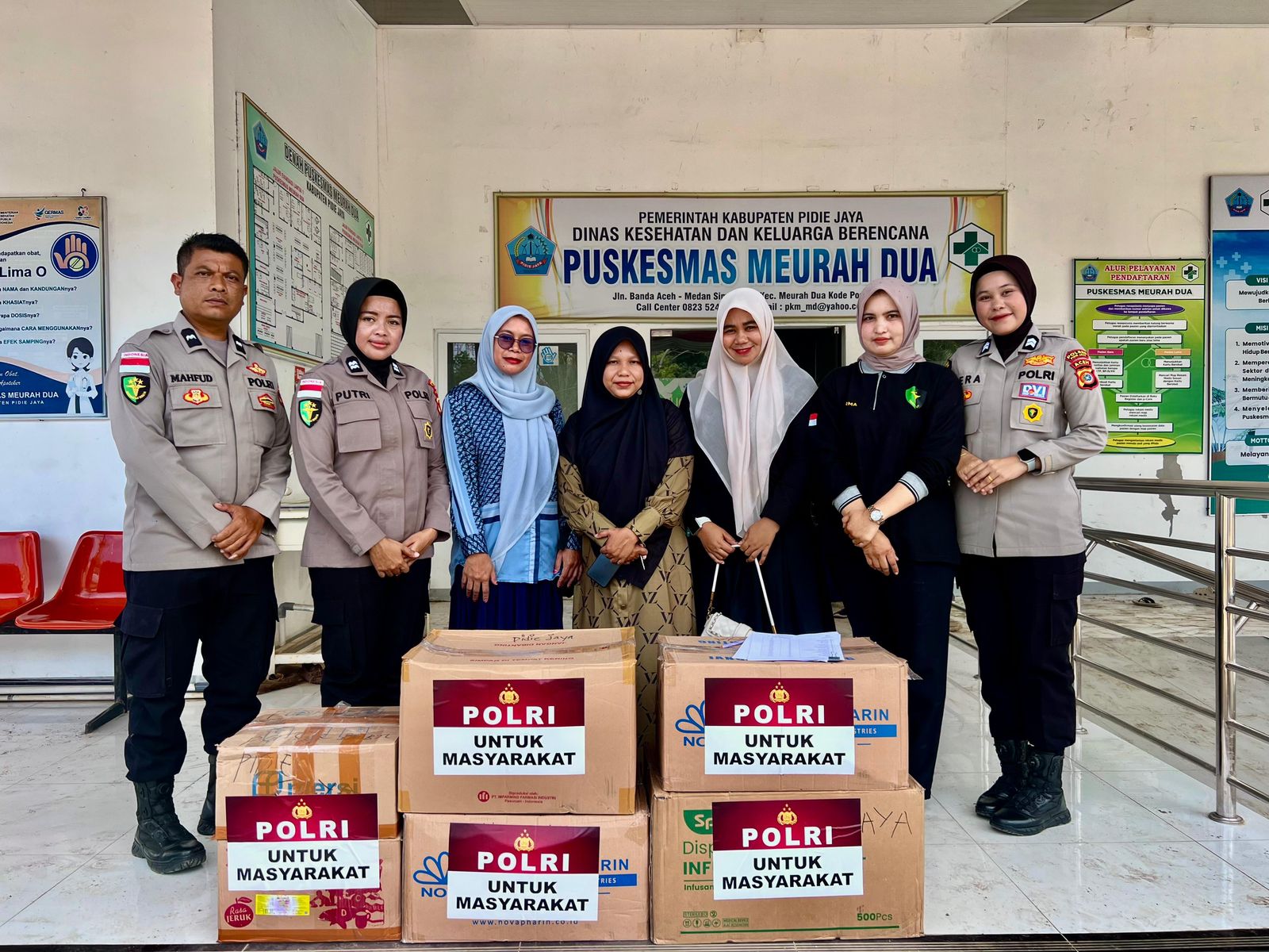 Kapolres Pidie Jaya Serahkan Bantuan Obat-obatan Kapolda Aceh kepada Korban Banjir di Meureudu