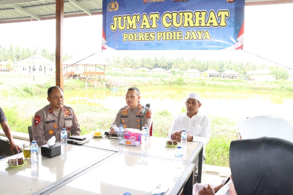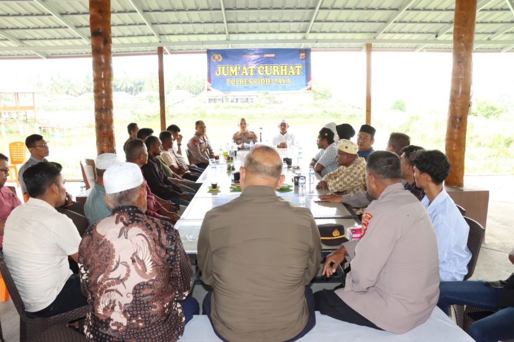 PIDIE JAYA, blusuk online– Dalam rangka mempererat hubungan antara kepolisian dan masyarakat, Polres Pidie Jaya melaksanakan kegiatan Jumat Curhat Presisi bersama warga sekitar Mapolres, Jumat (17/10/2025), bertempat di Kantin Tangguh Polres Pidie Jaya, Gampong Teungklut, Kecamatan Trienggadeng, Kabupaten Pidie Jaya.