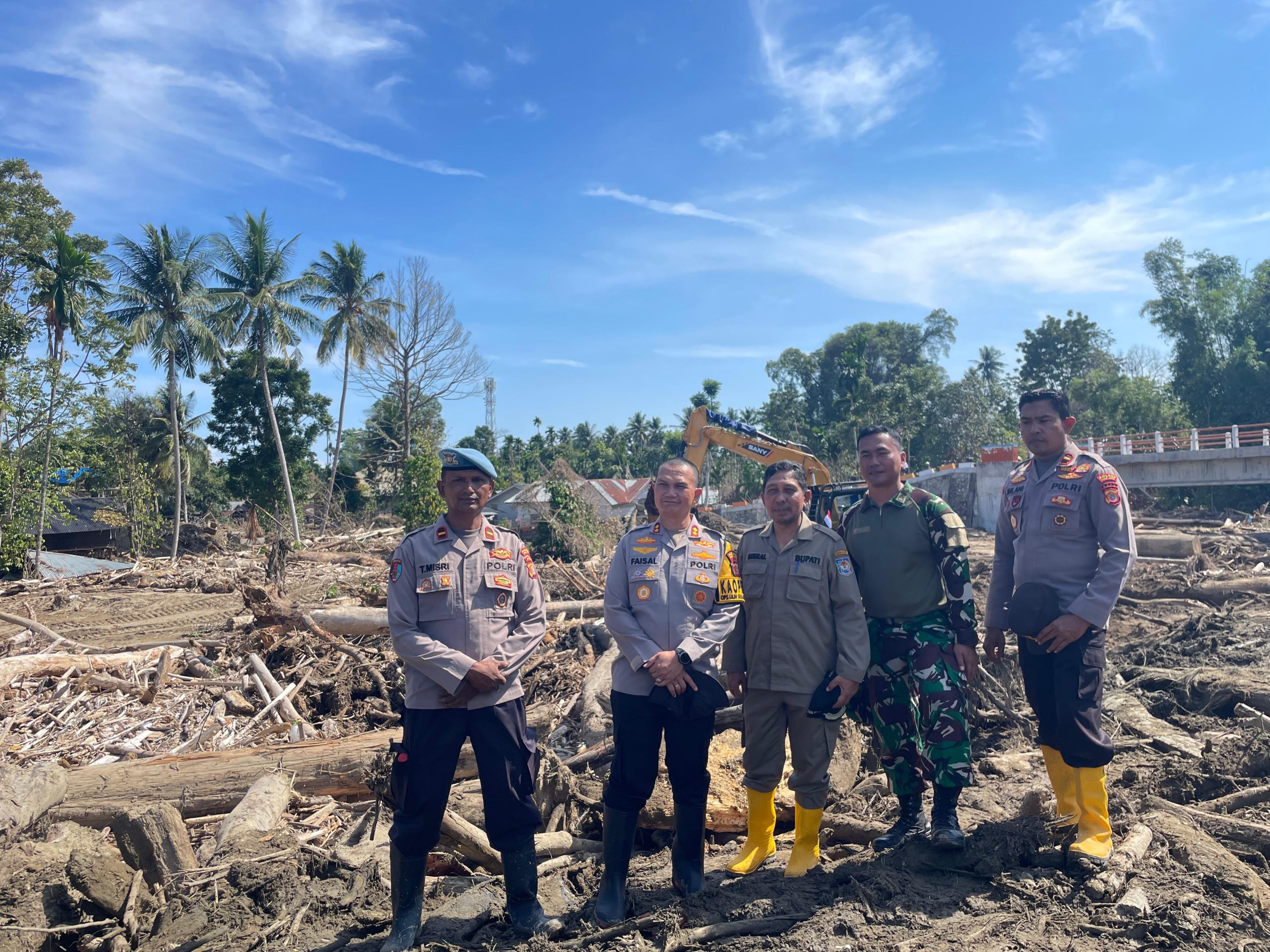 Kapolres Pidie Jaya AKBP Ahmad Faisal Pasaribu bersama Bupati Pidie Jaya H. Sibral Malasyi dan Dandim 0102 Pidie Letkol Inf Abdulhadi meninjau langsung awal pengerjaan pembersihan aliran Sungai Krueng Meureudu menggunakan excavator lengan capit bantuan Presiden Republik Indonesia, H. Prabowo Subianto, Minggu (21/12/2025) pagi. Peninjauan tersebut dilakukan sekitar pukul 09.10 WIB di kawasan Jembatan Krueng Meureudu, Gampong Meunasah Mancang, Kecamatan Meurah Dua. Lokasi ini merupakan salah satu titik yang terdampak paling parah akibat banjir bandang yang melanda Kabupaten Pidie Jaya pada 26 November 2025 lalu.