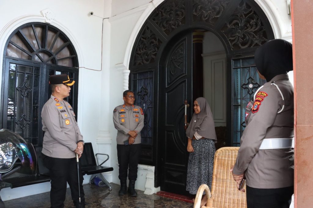 Meureudu , blusuk online– Kapolres Pidie Jaya, AKBP Ahmad Faisal Pasaribu, bersama Pejabat Utama (PJU) Polres Pidie Jaya melakukan pengecekan terhadap personel yang bertugas mengamankan wisma penginapan Dewan Hakim Musabaqah Tilawatil Qur’an (MTQ) Aceh XXXVII di Kabupaten Pidie Jaya, Rabu 5 November 2025.